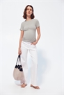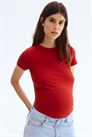 Облегающий топ из мягкого ребристого трикотажа с круглым вырезом и короткими рукавами.