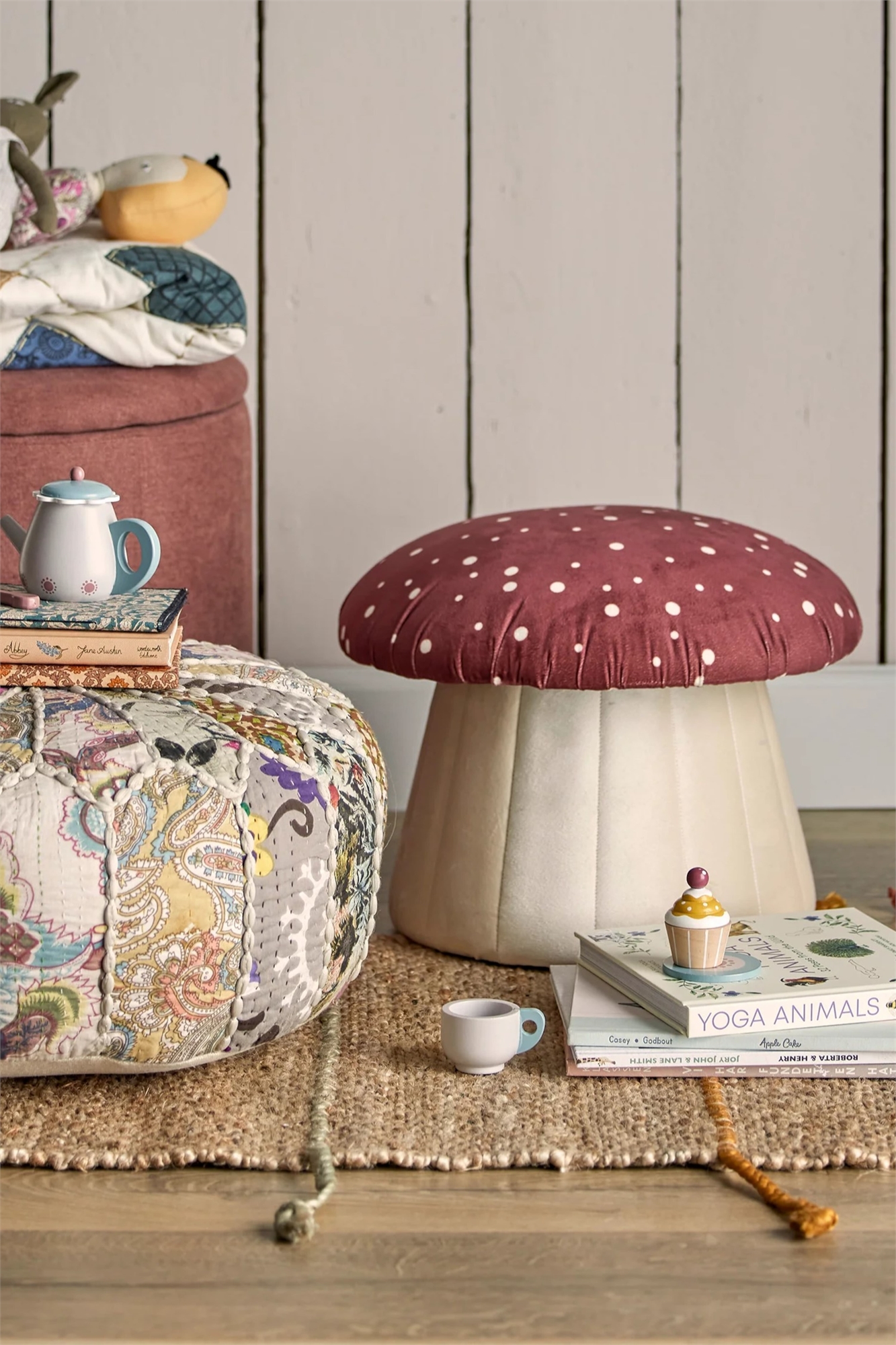 Пуф Lue от Bloomingville MINI - это красивый и уютный предмет мебели для детской комнаты. Пуф изготовлен из полиэфирной ткани и имеет форму гриба. Пуф можно использовать как подставку для ног или кресло, он имеет великолепный красно-белый рисунок. D37xH30 см