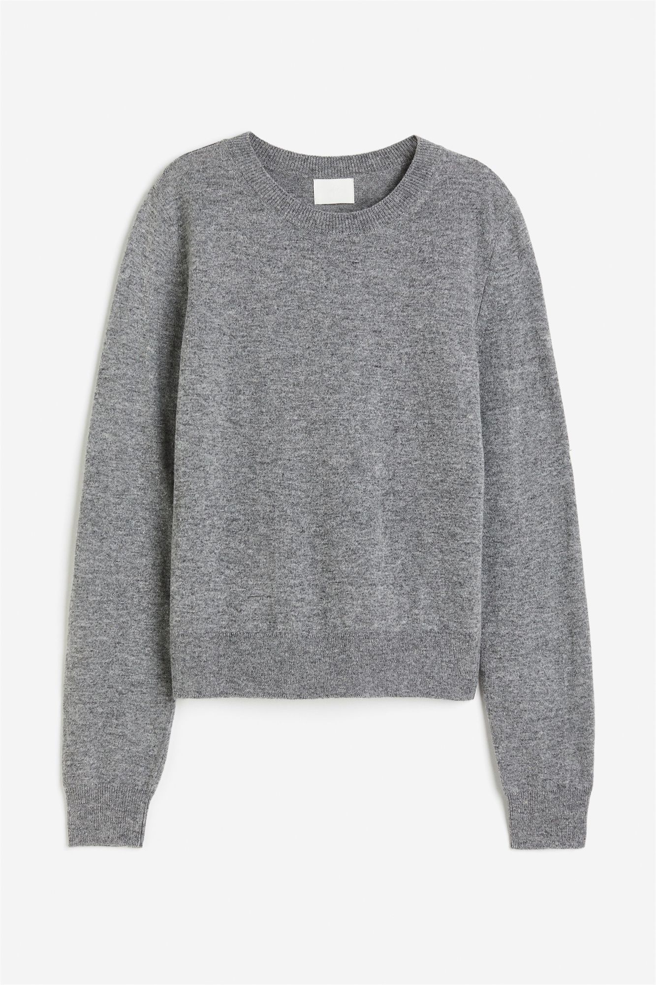 Джемпер из мягкого трикотажа с добавлением шерсти с круглым вырезом и длинными рукавами. Окантовка по вырезу горловины, манжетам и подолу.