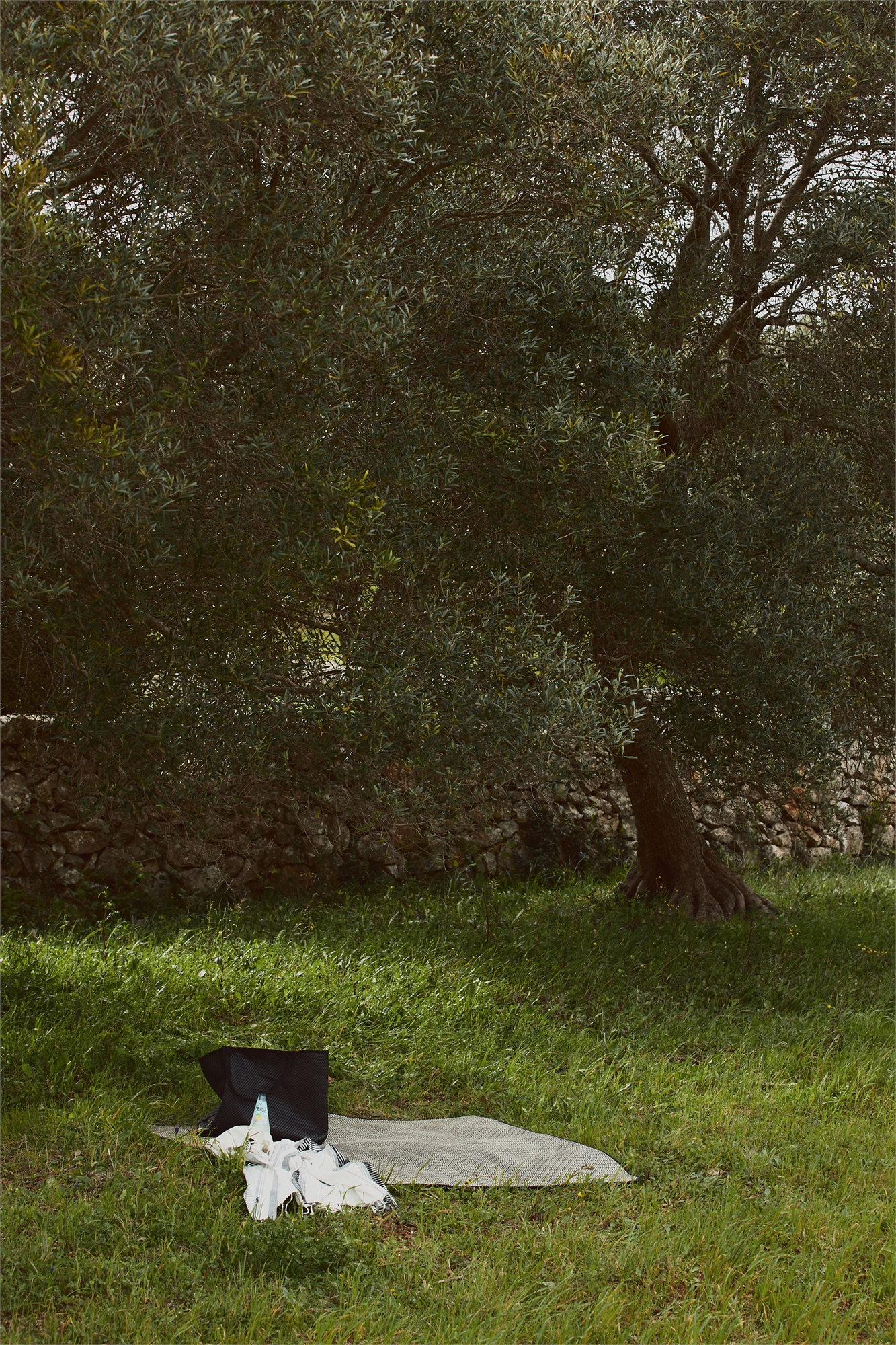 Плед для пикника с узорчатым плетением и мягкой водоотталкивающей пластиковой основой. Ремень для переноски с крючком и петлей.