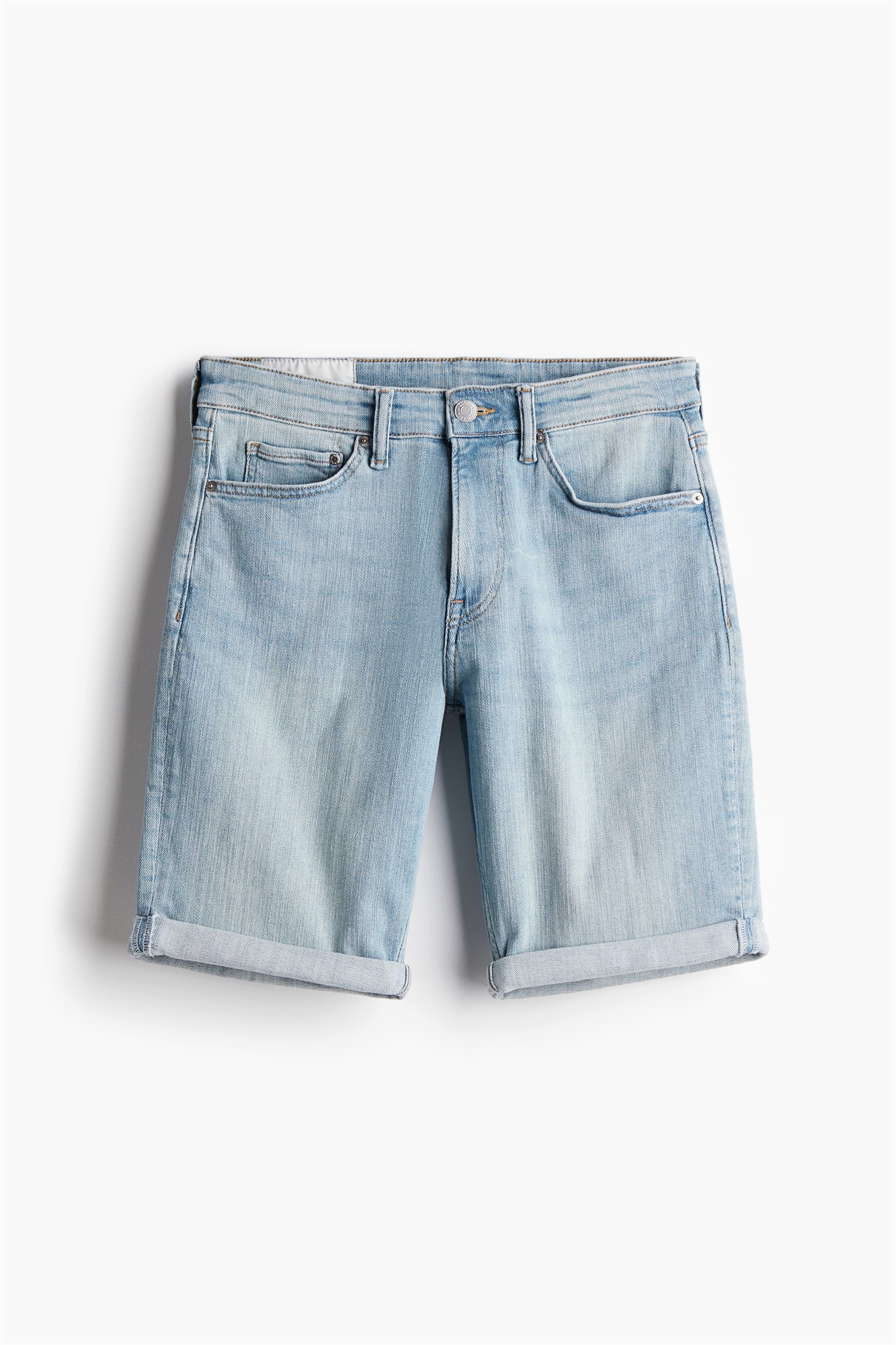 Шорты с 5 карманами из хлопкового денима со стрейчем для комфорта. Прямые штанины и зауженный крой от талии до бедер. Зауженный пояс и ширинка на молнии. Пришитые подвороты с отстрочкой по подолу.