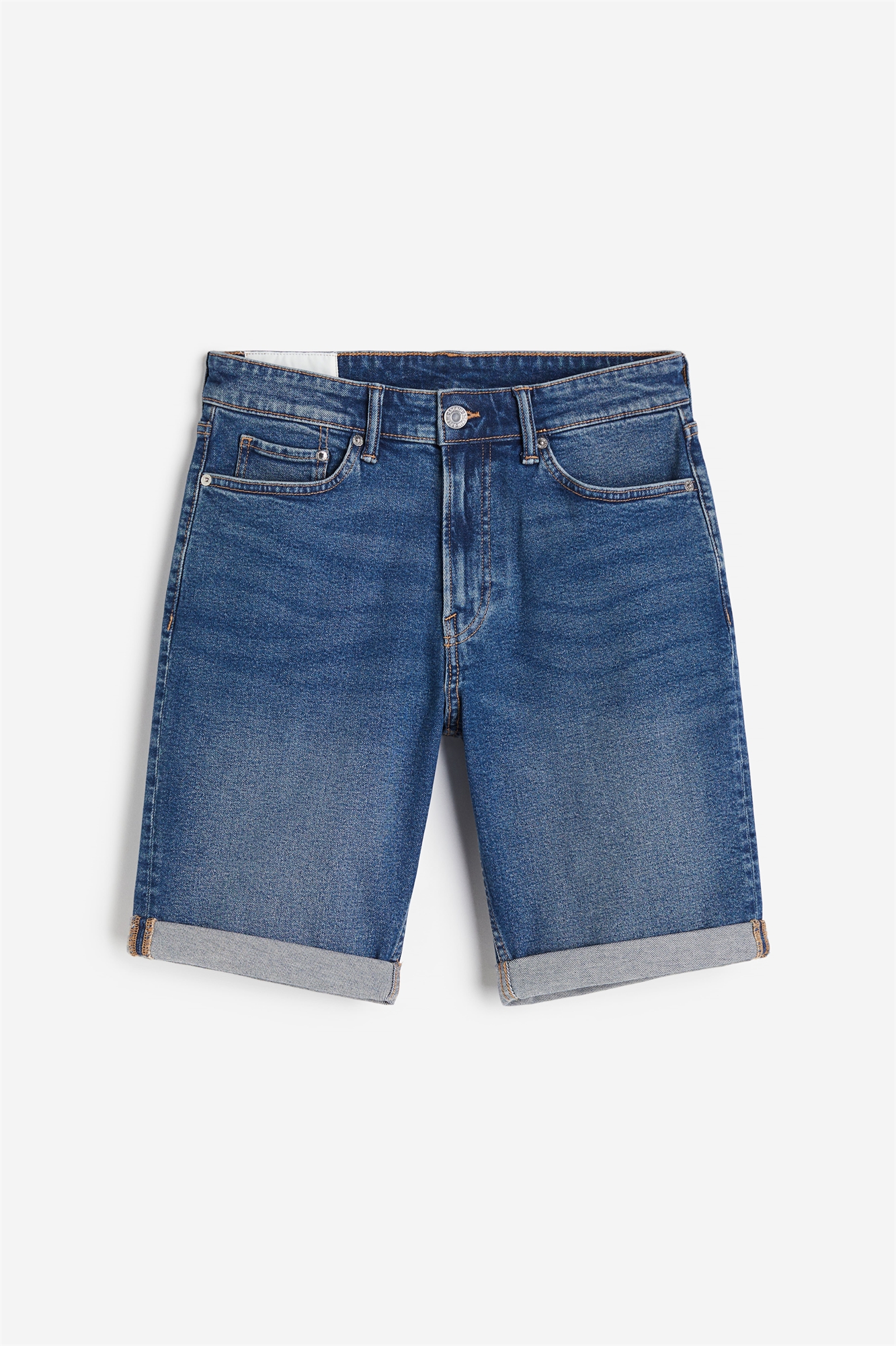 Шорты с 5 карманами из хлопкового денима с легким стретчем для комфорта. Прямые штанины и зауженный крой от талии до бедер. Регулярная талия и ширинка на молнии. Подвороты на подоле с отстрочкой. Идеально сочетаются с простой футболкой - в любое время.