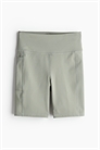 Спортивные велошорты из функциональной ткани с добавлением DryMove™, которая отводит влагу от кожи, обеспечивая комфортную сухость во время движения. Высокая талия с широким поясом и открытым карманом на одной штанине для удобного доступа к мобильному телефону или абонементу в спортзал.