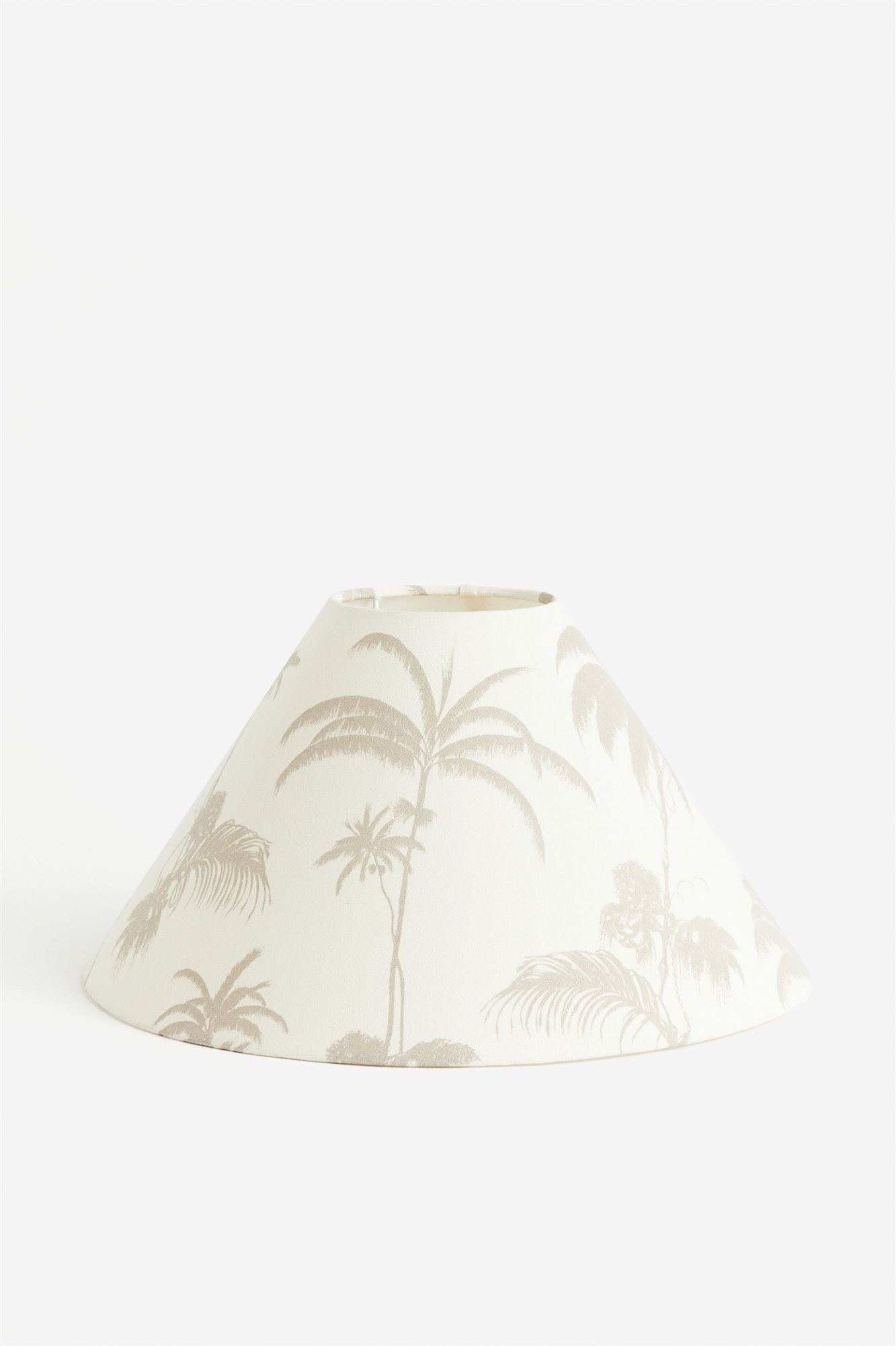 Большой абажур из хлопка с узором по всей поверхности. Диаметр в верхней части 12,5 см. Высота 21 см. Диаметр по низу 40 см.