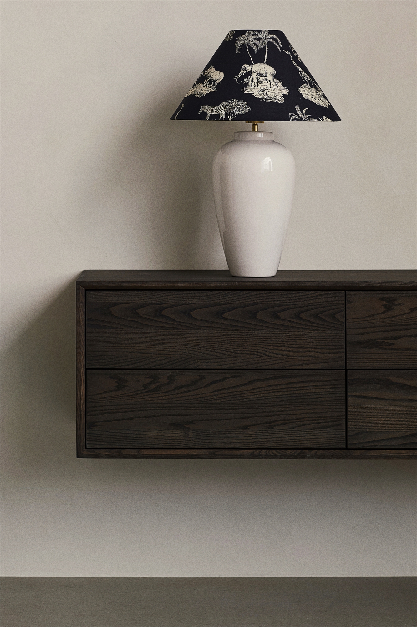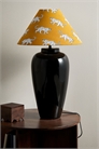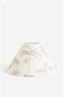 Большой абажур из хлопка с узором по всей поверхности. Диаметр в верхней части 12,5 см. Высота 21 см. Диаметр по низу 40 см.