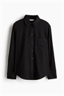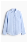 Рубашка с воздушным переплетением из смеси льна и вискозы. Воротник, пуговицы спереди, открытый нагрудный карман и двухслойный ярмо с коробчатой складкой сзади. Длинные рукава с манжетами на пуговицах. Закругленный подол.