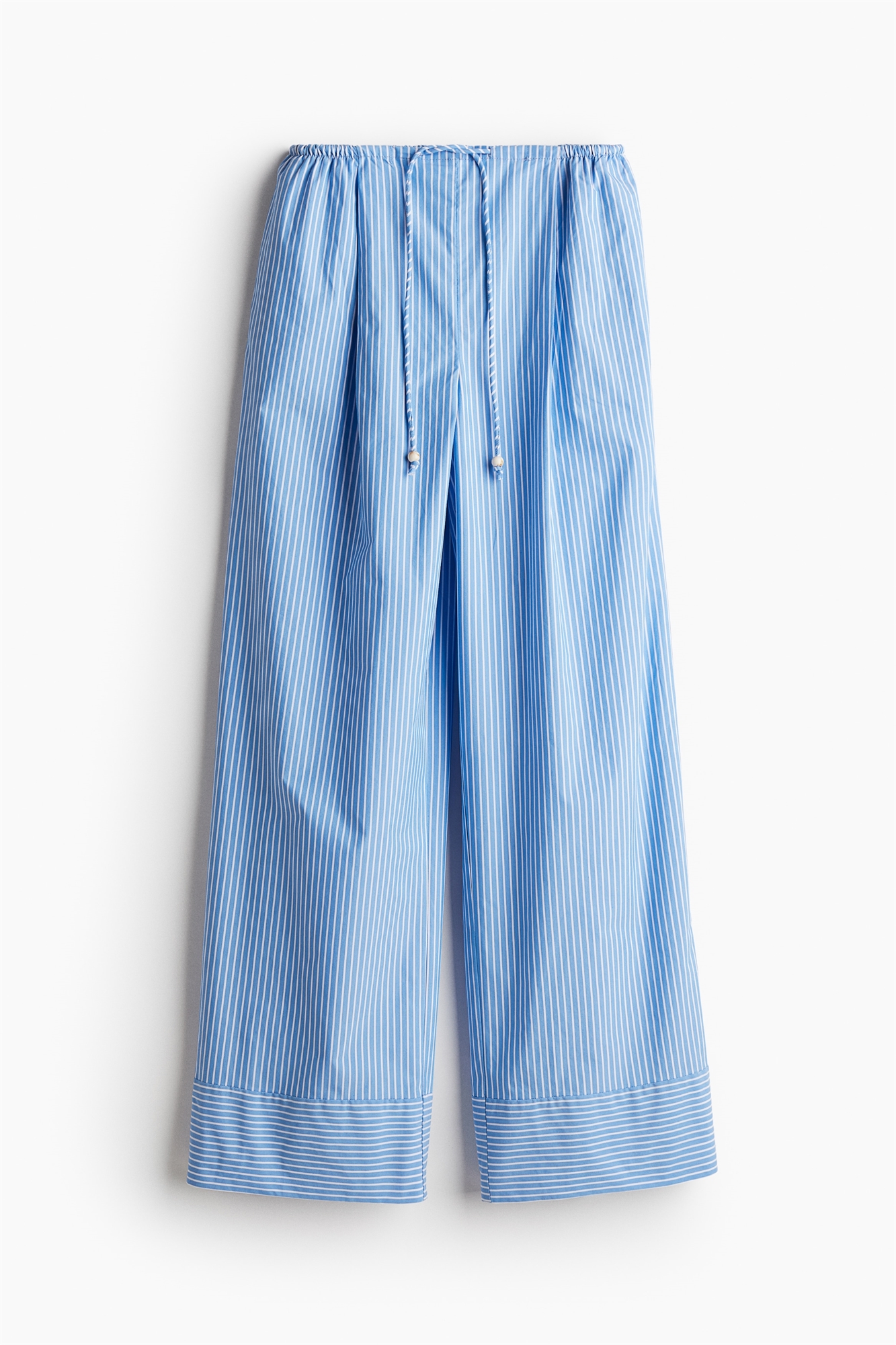 Свободные брюки из тканого материала с высокой эластичной талией с узким шнурком, незаметными боковыми карманами и широкими штанинами со складками в верхней части.