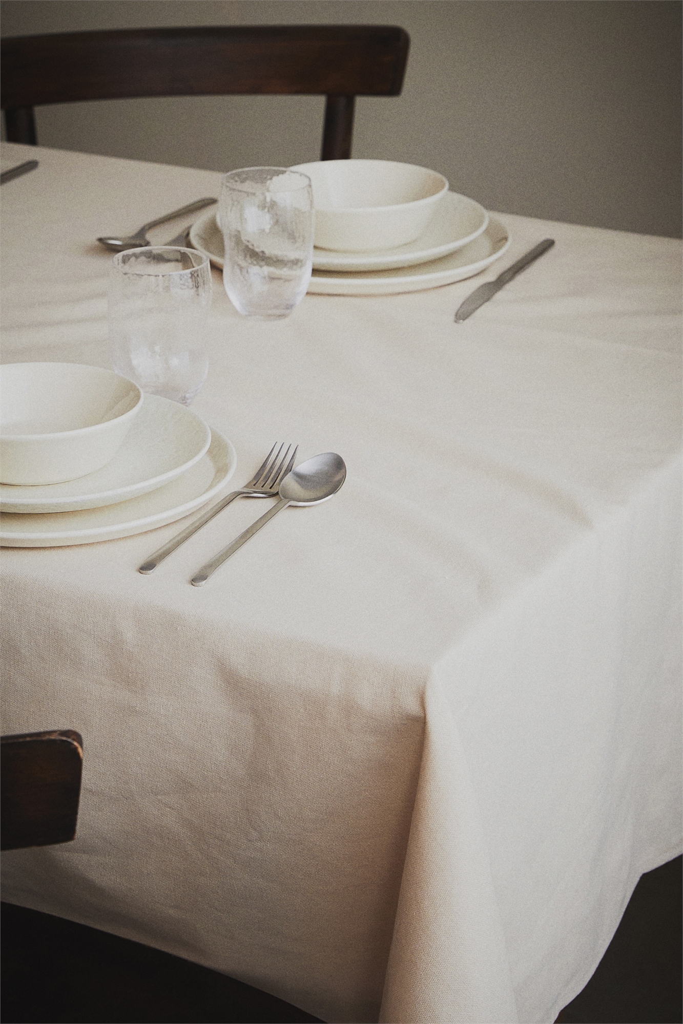 Скатерть из хлопчатобумажного полотна с принтом по всей поверхности и водоотталкивающим покрытием, которое позволяет легко вытирать ее насухо и содержать в чистоте.