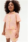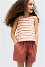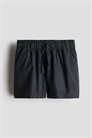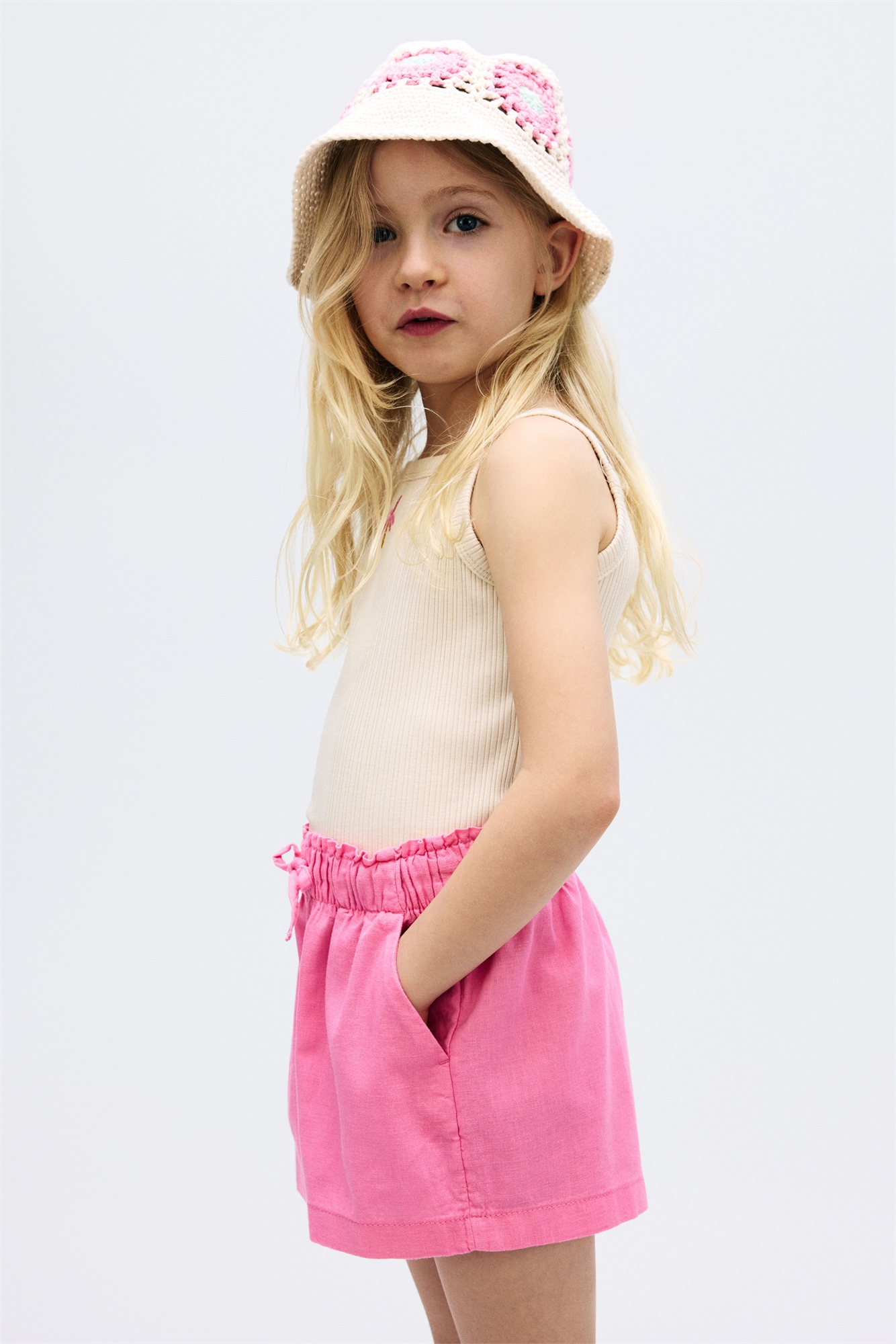 Свободные шорты с воздушным плетением из смеси льна и хлопка. Диагональные боковые карманы и эластичный пояс с узким шнурком.