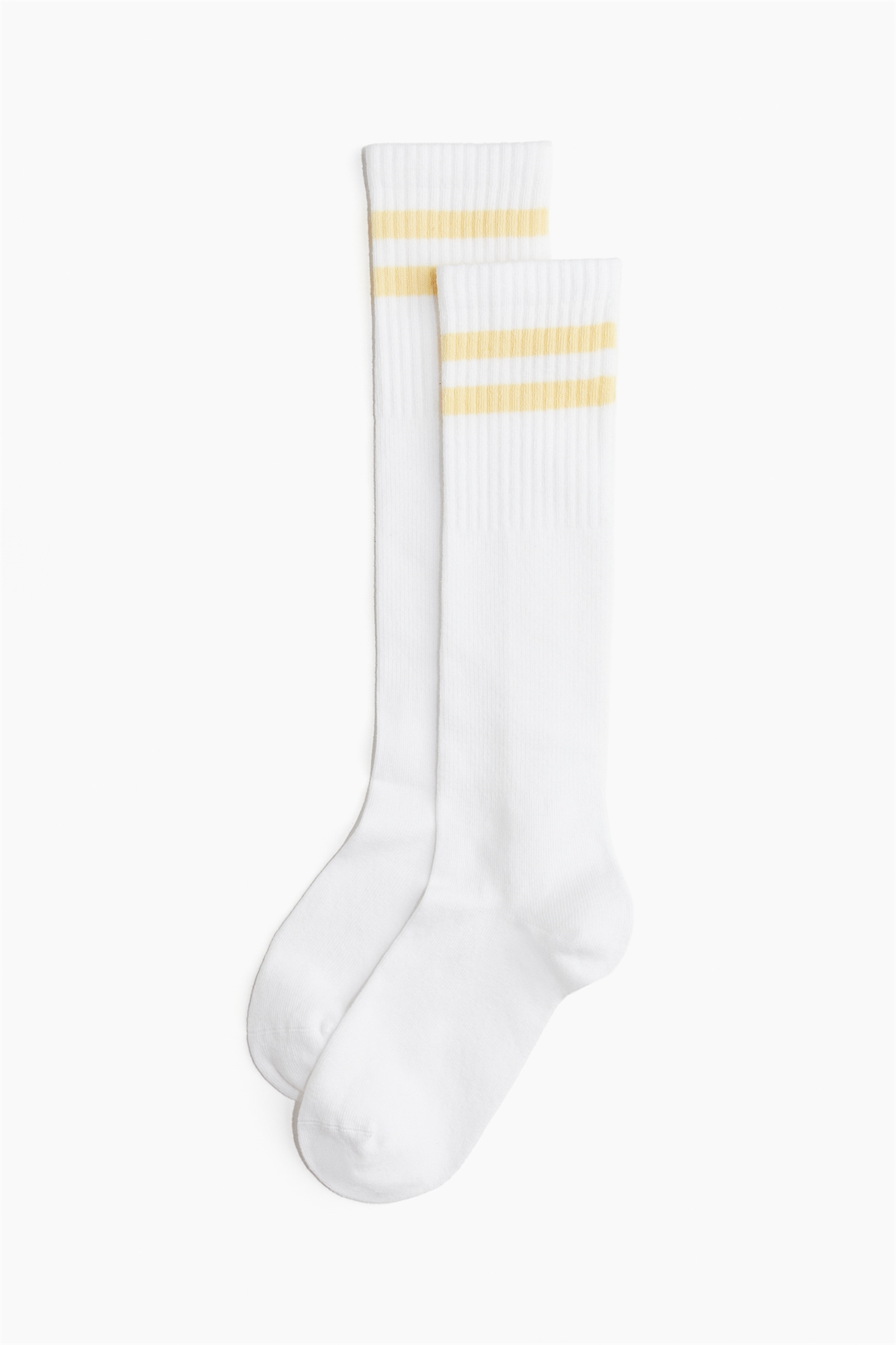 Носки до колена из мягкой хлопковой смеси тонкой вязки с эластичным верхом и ребристым голенищем.