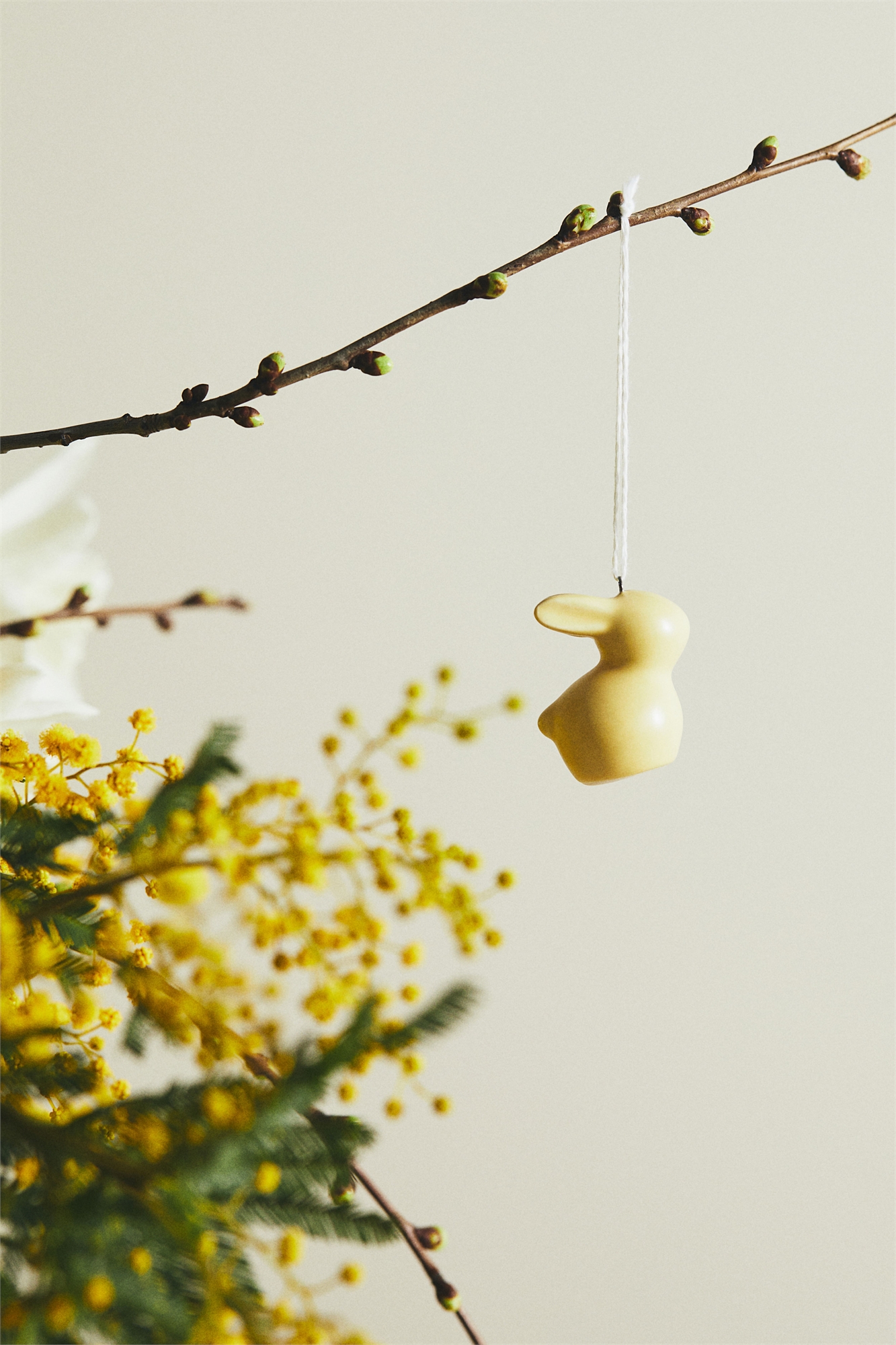 Пара милых пасхальных украшений в виде маленьких зайчиков из глазурованного керамогранита с ленточкой на верхушке для подвешивания. Высота 3,5 см.