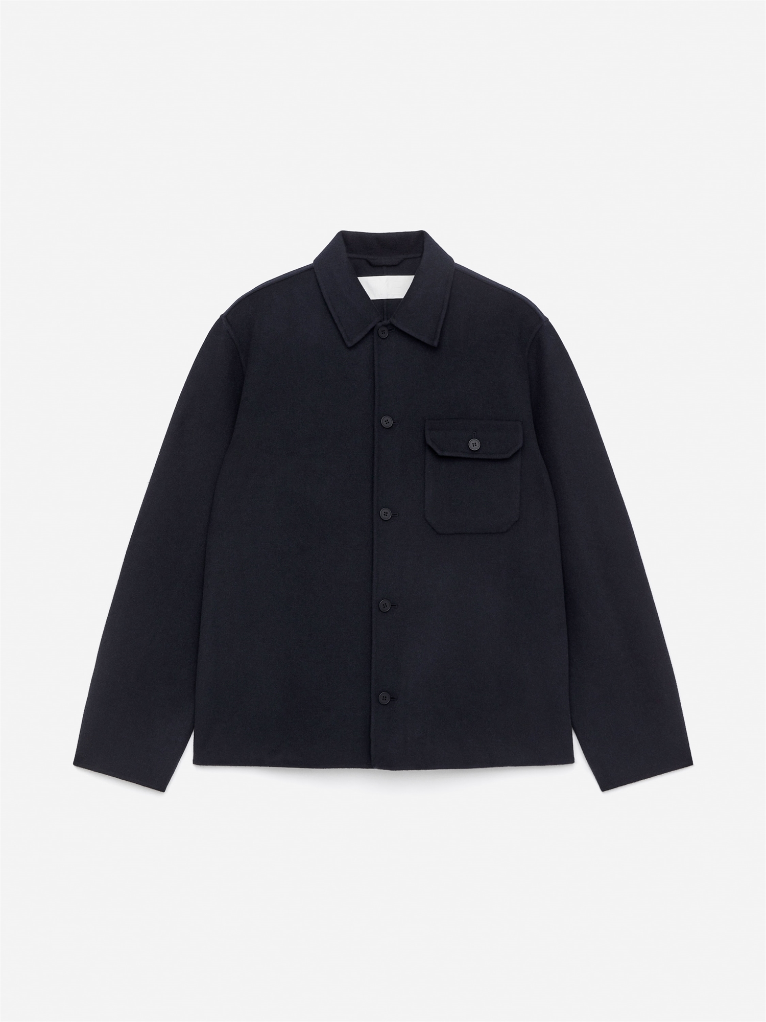 Рубашка сшита из легкой шерстяной ткани двойного плетения. Этот фасон имеет обычный крой, накладные карманы на груди и плоские пуговицы corozo.