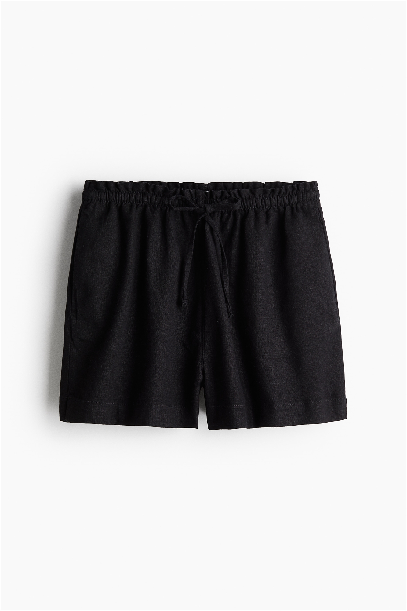 Шорты с воздушным плетением из смеси льна. Высокая талия с эластичной отделкой, небольшой оборкой и узким шнурком. Незаметные боковые карманы.