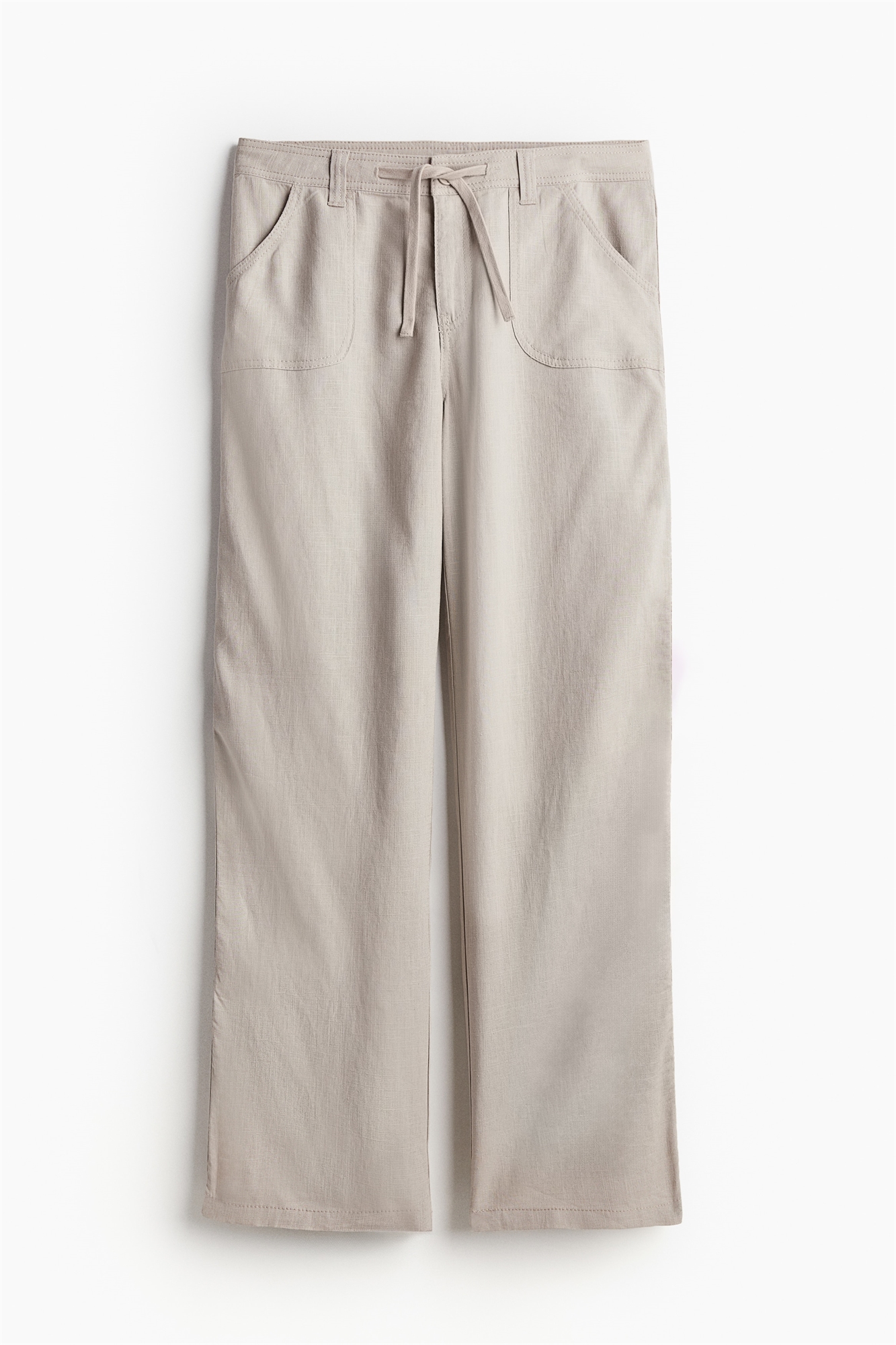 Брюки с воздушным плетением из смеси вискозы и льна. Регулярная талия с утягивающим шнурком, застежка на молнию и пуговицу. Диагональные боковые карманы, задние карманы и прямые ноги.