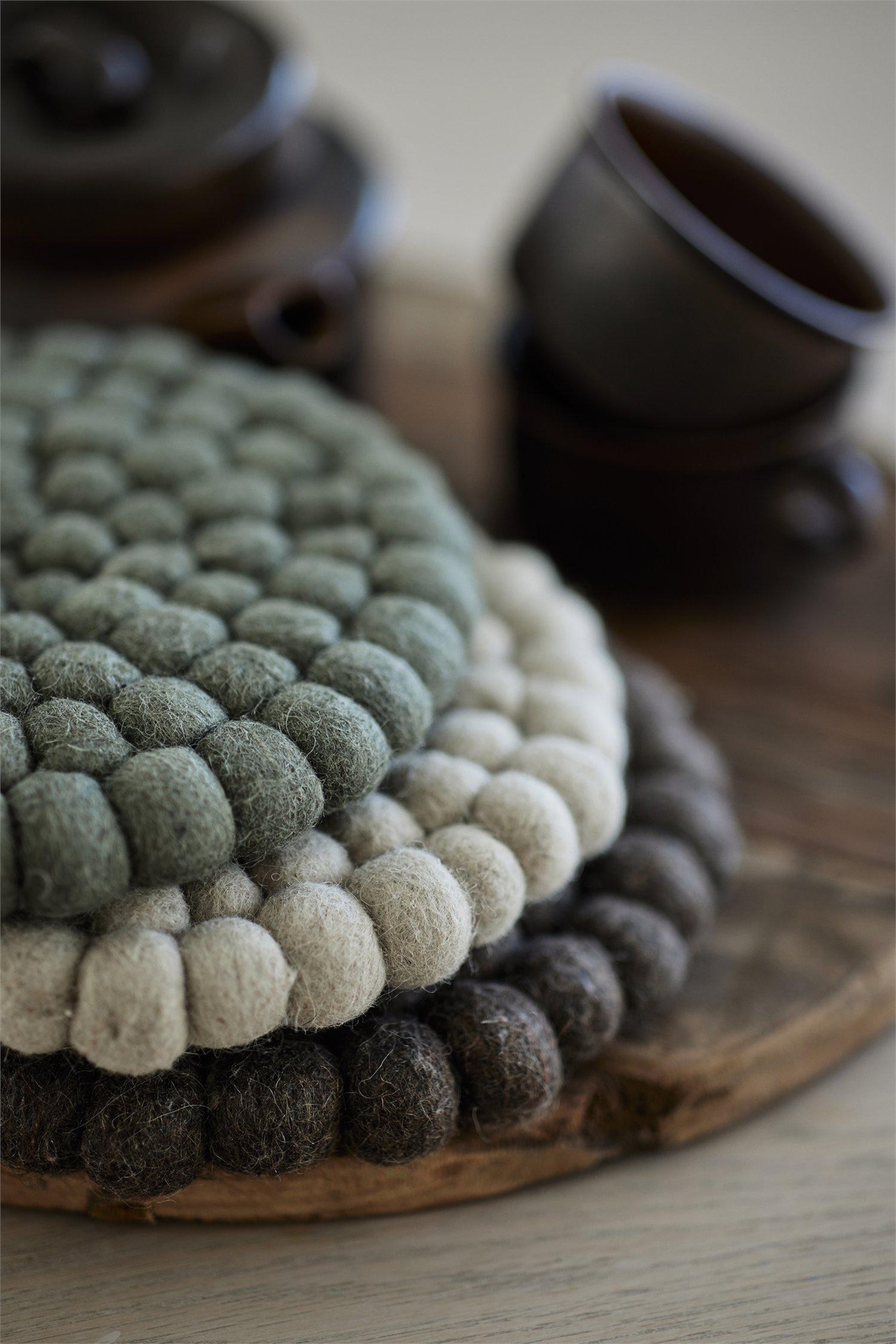 Шерстяные подставки для защиты поверхностей от горячих кастрюль. Размер: 20 см в диаметре. Объем поставки: 2 упаковки.