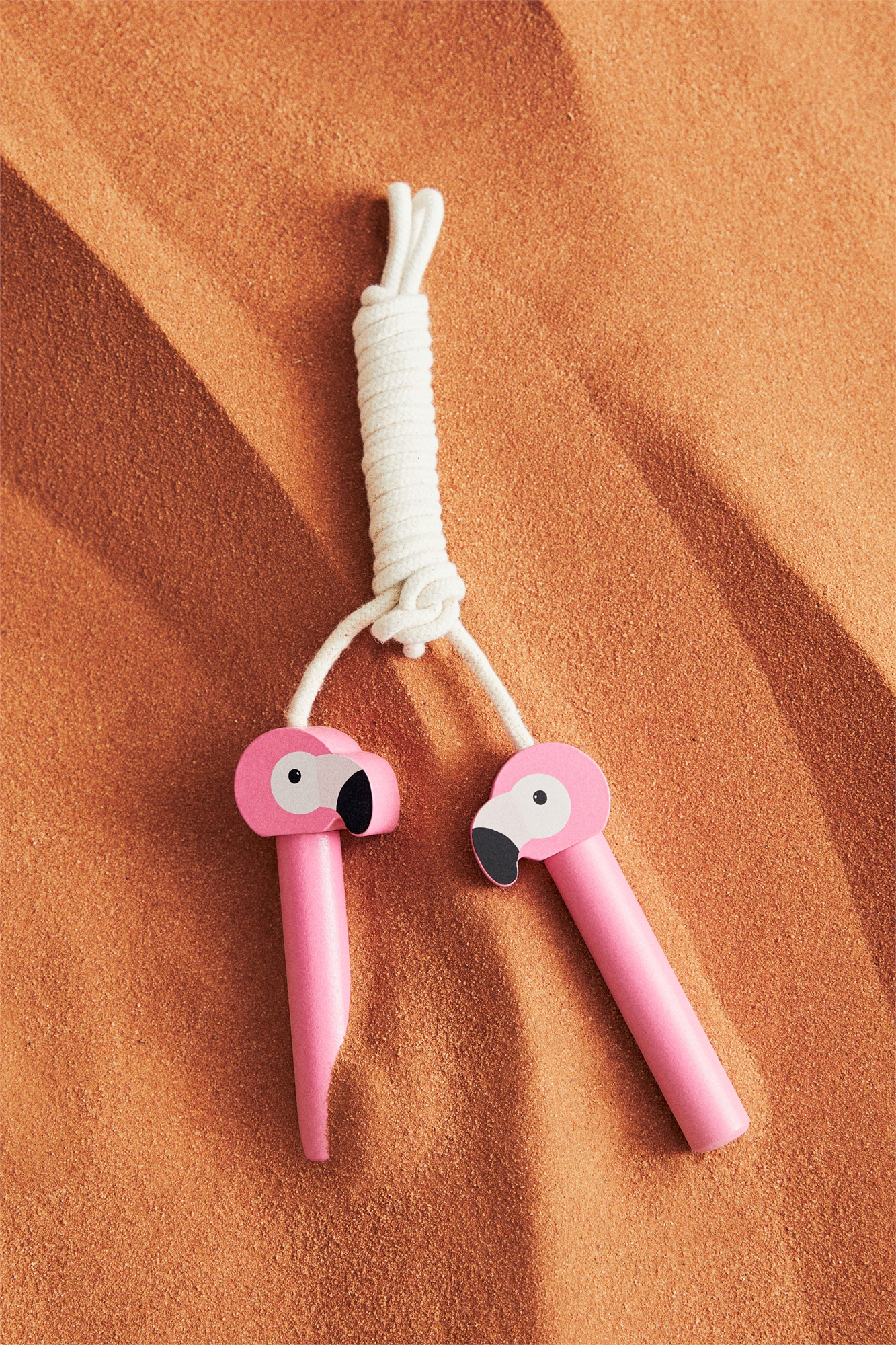 Хлопковая скакалка с симпатичными деревянными ручками в форме рожков мороженого. Длина ручек 11,6 см. Длина скакалки 210 см.