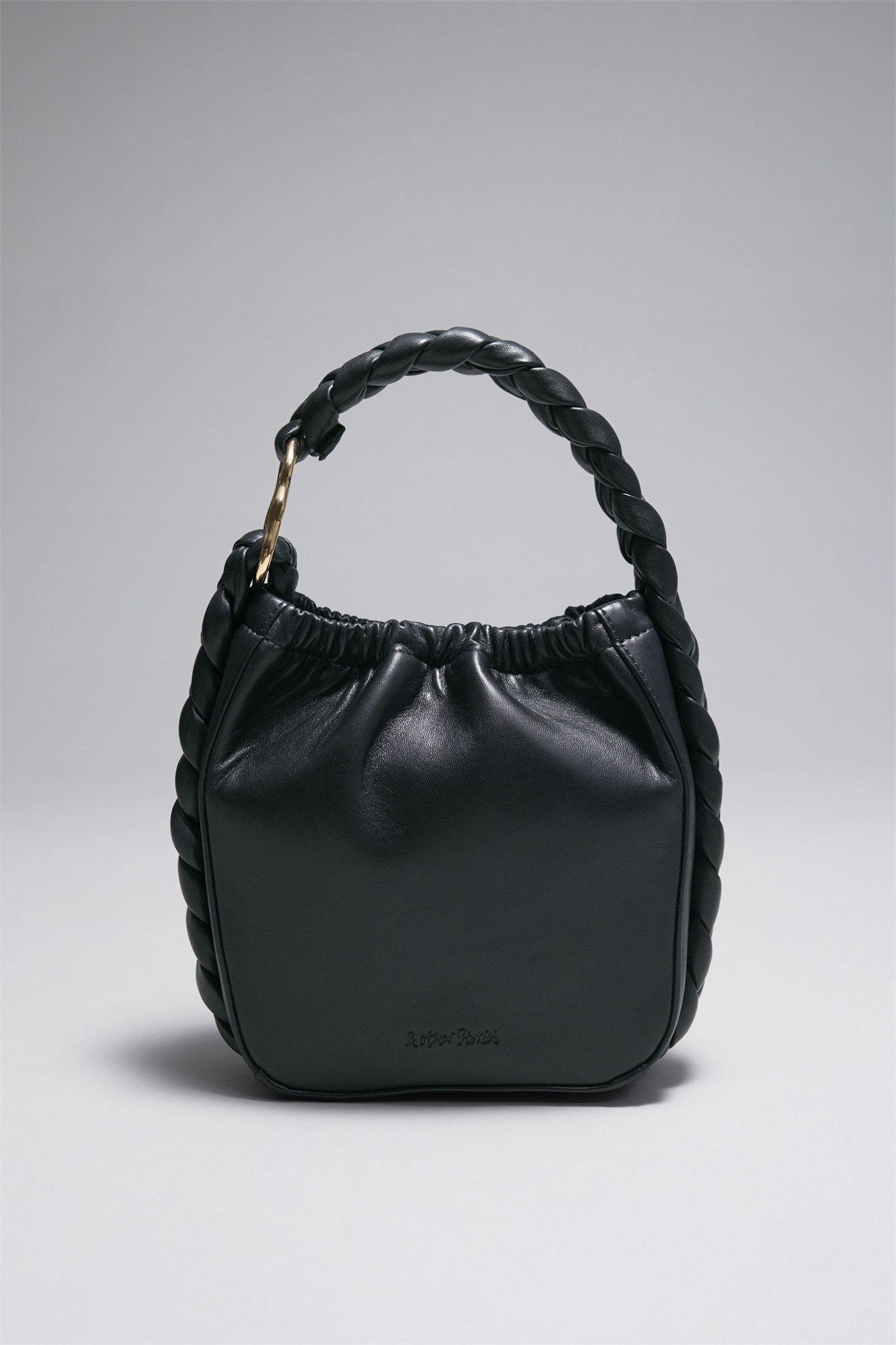 Сумка в форме ведра изготовлена из эластичной кожи. Эта небольшая сумка украшена плетеной ручкой и фурнитурой золотого цвета. Внутри на хлопковой подкладке имеется внутренний карман и скрытая магнитная застежка. Высота: 19 см / 7,5" Длина: 16,5 см / 6,5" Глубина: 5,5 см / 2,2" Опускание ручки: 12 см / 4,7"