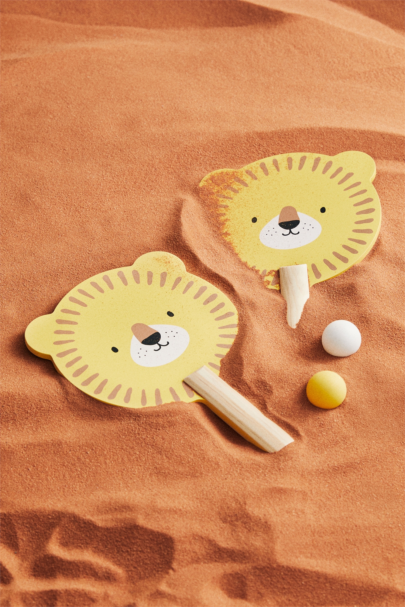 Устройте веселье на солнце с помощью этого набора для пляжного тенниса, состоящего из двух деревянных бит в форме ледяных леденцов и двух пластиковых мячей восхитительных пастельных оттенков.
