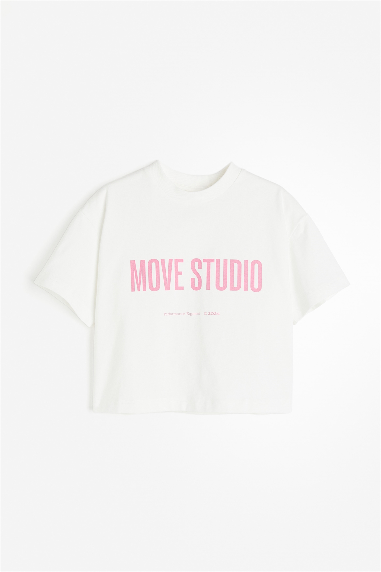 Облегающий спортивный топ из функциональной ткани DryMove™, которая отводит влагу от кожи, обеспечивая комфортную сухость во время движения. Свободный крой с круглым вырезом с ребристой отделкой, спущенными плечами и короткими рукавами. Текстовый принт спереди.