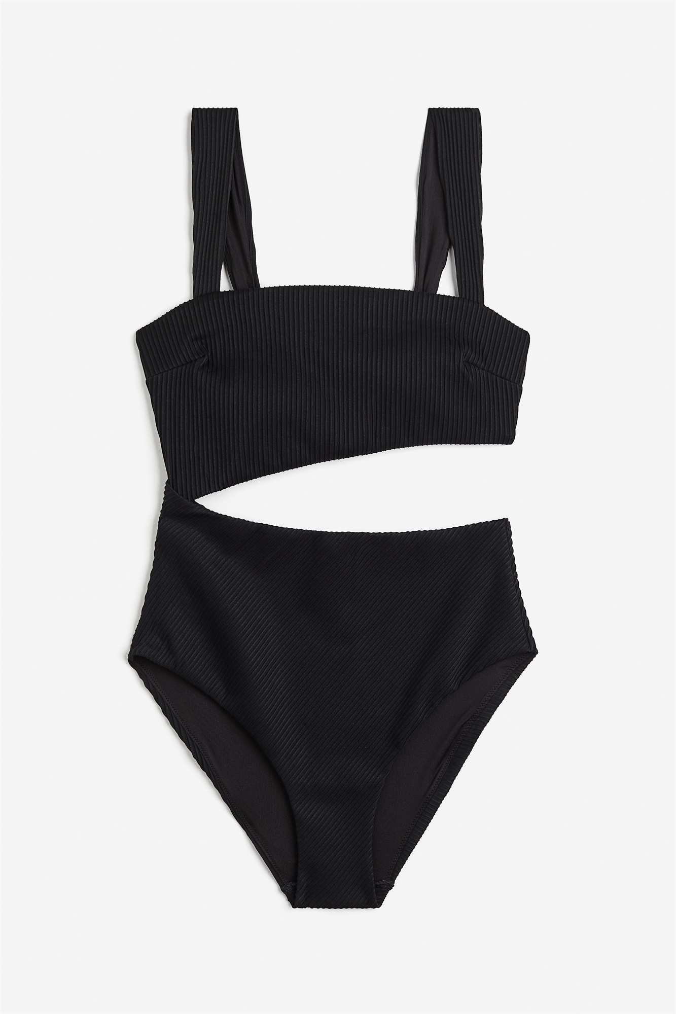 Полностью на подкладке, ребристый купальник с квадратным вырезом, широкими бретелями и чашечками со съемными вкладышами, придающими форму бюсту и обеспечивающими хорошую поддержку. Отрезная часть на талии, высокие ноги и средняя посадка сзади.