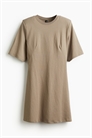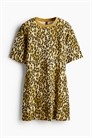 Короткое платье-футболка свободного кроя из мягкого хлопкового джерси с ребристой отделкой по вырезу горловины, подплечниками и прямым покроем подола.