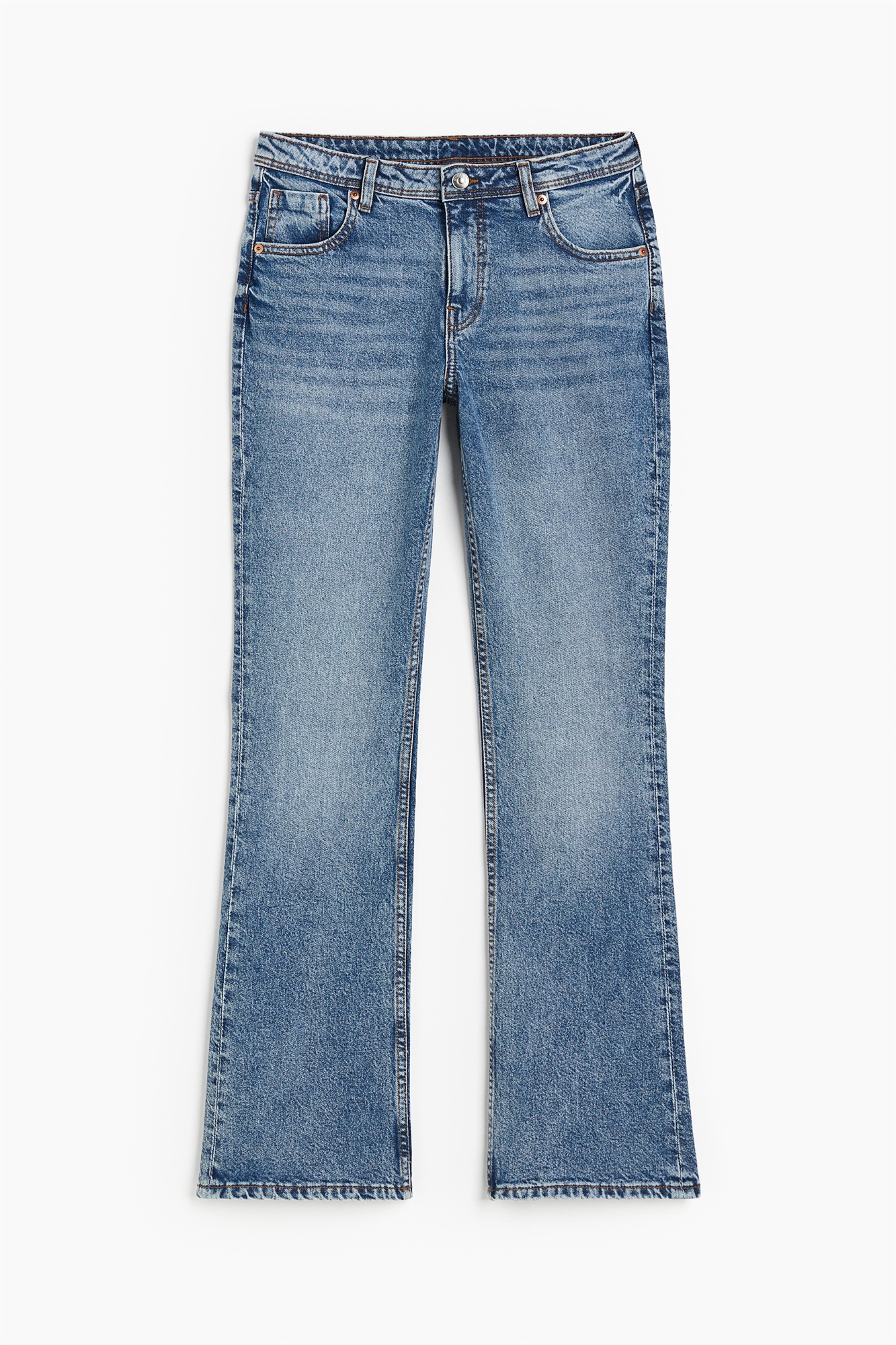 Джинсы с 5 карманами из хлопкового денима с легким стретчем для комфорта. Джинсы Bootcut с зауженной посадкой от талии до бедра, расклешенные от колена до подола. Регулярная талия с ширинкой на молнии и пуговице. Регулярная длина, рассчитанная на верхнюю часть стопы с небольшим запасом или без него. Определяющая форма из сезона в сезон.