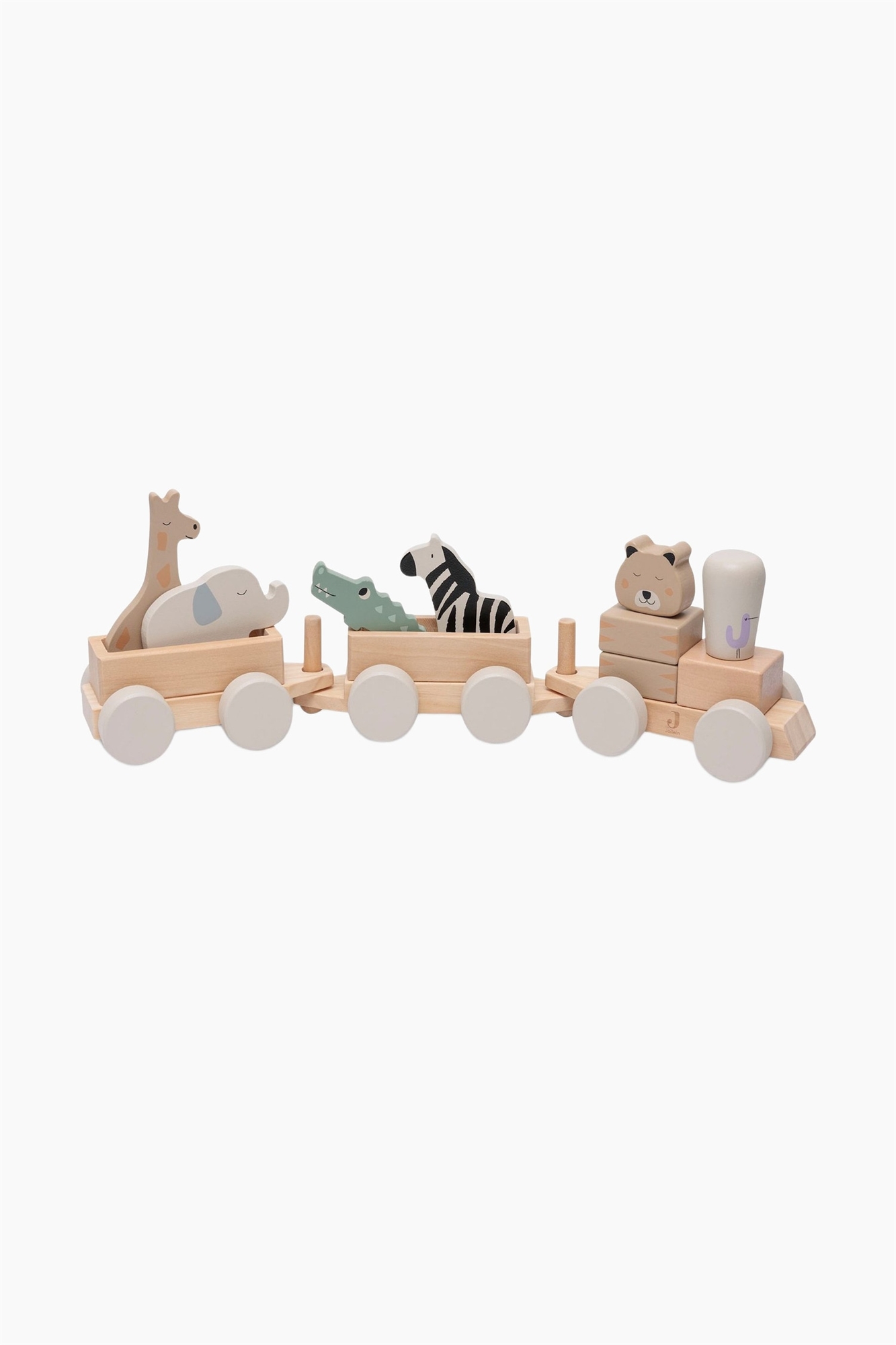 Чух, чух: поезд едет! Этот забавный деревянный игрушечный поезд имеет несколько вариантов игры. Конечно же, деревянный поезд может ездить. Локомотив и два вагона крепко прикреплены друг к другу, а также могут отсоединяться друг от друга. Игра с поездом и блоками стимулирует органы чувств ребенка, позволяя ему открывать, чувствовать, смотреть и узнавать. Животные поставляются отдельно и могут перевозиться в вагонах. Ваш ребенок может дать волю своему воображению. Поезд содержит сельскохозяйственных животных. Например, лошадь, овца, утка, дерево и яблоко. Отлично сочетается с деревянным пазлом или набором деревянных блоков.