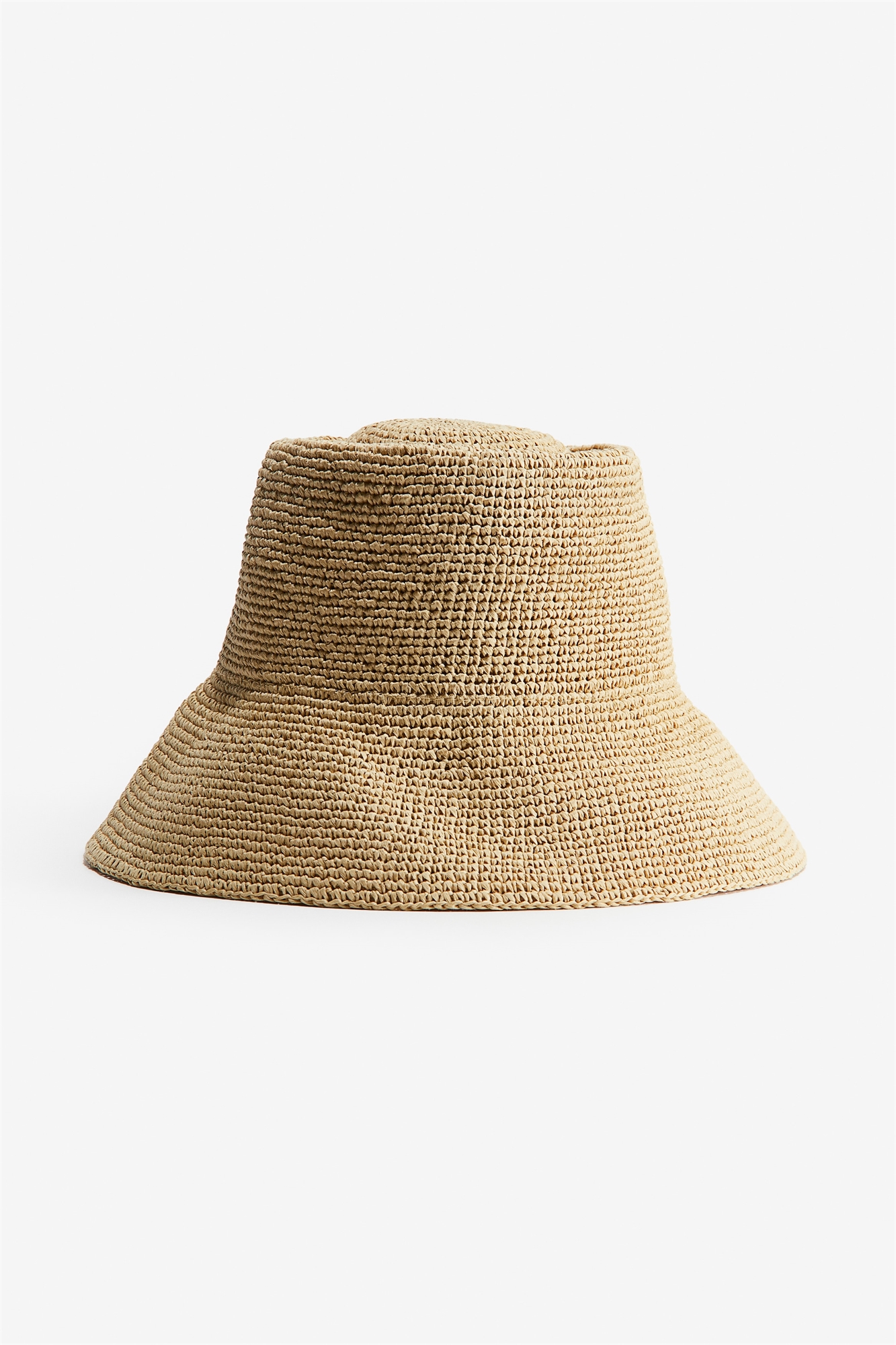 Шляпа-ведро ручной работы из плетеной бумажной соломки с покатым околышем и потайной лентой из гросгрейн. Ширина ободка 8,5 см.