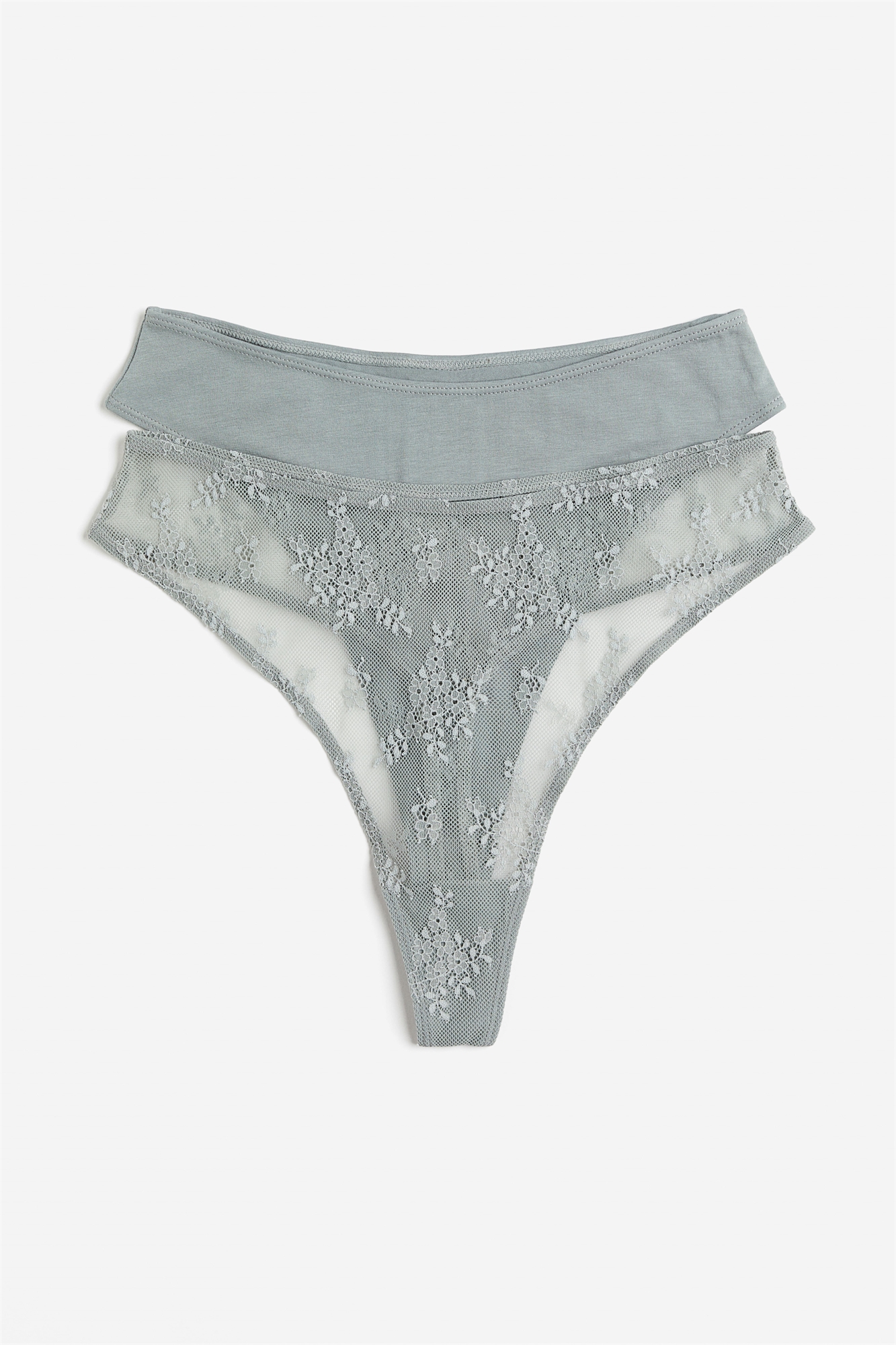 Трусы-стринги, одна пара из мягкого хлопкового джерси, другая - из кружева. Высокая талия и ластовица на подкладке.