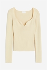 Облегающий топ из мягкого трикотажа в рубчик с вырезом "сердечко" и длинными рукавами.