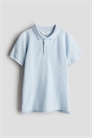 Рубашка-поло из хлопкового пике с ребристым воротником, застежкой на пуговицах и короткими рукавами с ребристой отделкой. Небольшой разрез с каждой стороны подола. Слегка удлиненная сзади.
