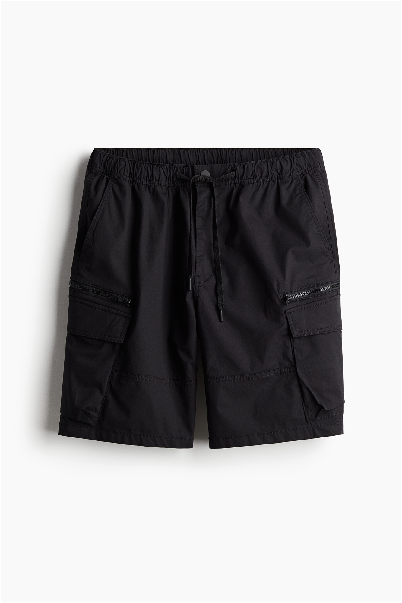 Шорты-карго длиной до колена из хлопкового полотна с ширинкой на молнии и пуговице, закрытой резинкой и утягивающим шнурком на талии. Боковые карманы, задние карманы с клапанами и потайными кнопками, а также несколько карманов на ногах, два на молнии и два с клапанами и потайными кнопками. Регулярный крой для комфортной носки и классического силуэта.