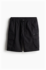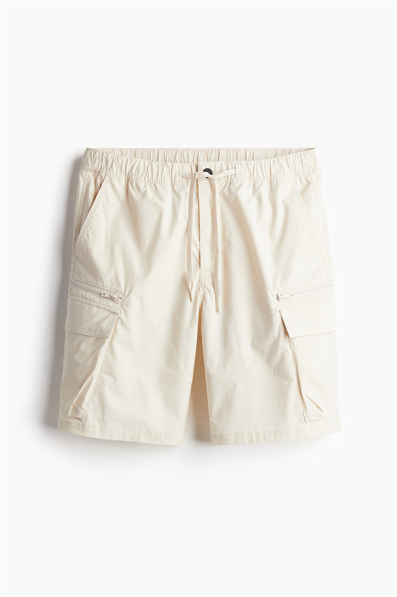 Шорты-карго длиной до колена из хлопкового полотна с ширинкой на молнии и пуговице, закрытой резинкой и утягивающим шнурком на талии. Боковые карманы, задние карманы с клапанами и потайными кнопками, а также несколько карманов на ногах, два на молнии и два с клапанами и потайными кнопками. Регулярный крой для комфортной носки и классического силуэта.