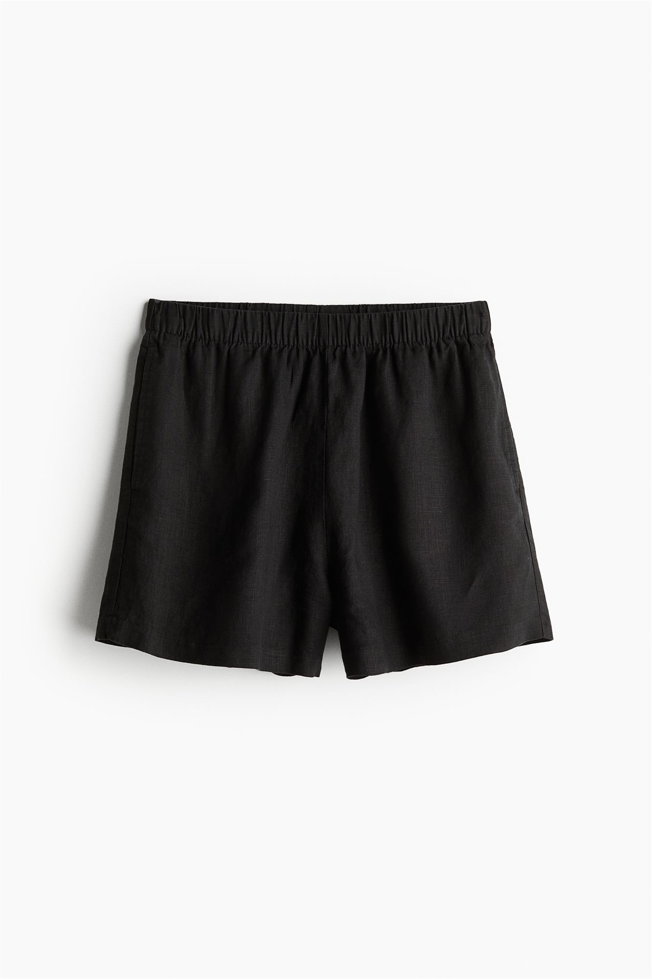 Шорты свободного покроя из воздушного льна с высокой эластичной талией и незаметными боковыми карманами.