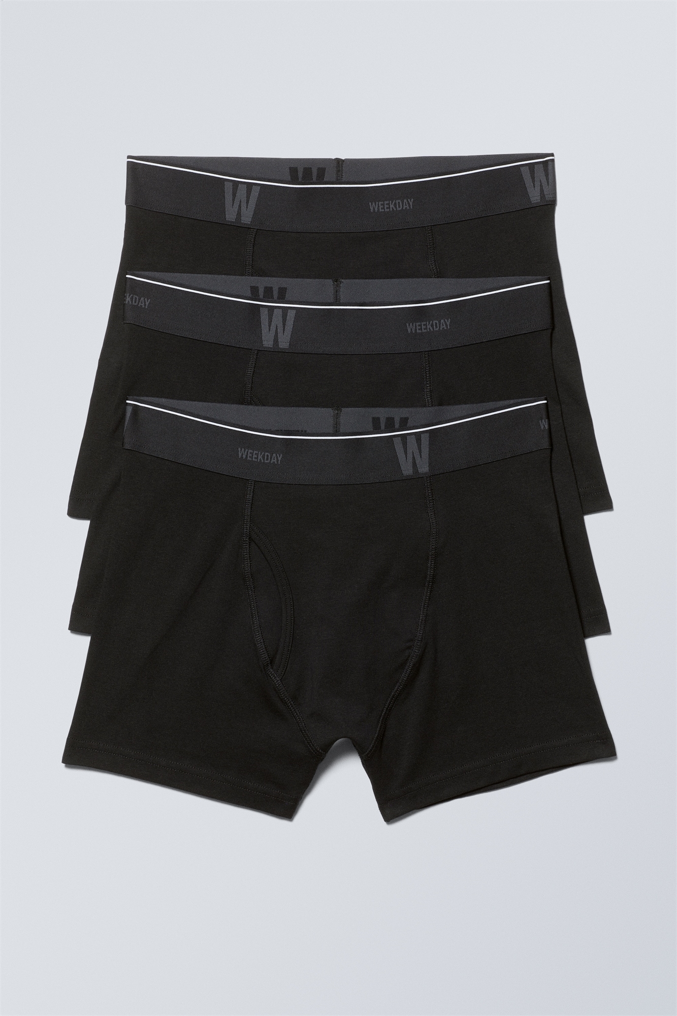 Комплект из трех трусов-боксеров из хлопка с добавлением эластана для дополнительной растяжимости и эластичности. Они имеют удобный однотонный эластичный пояс с напечатанными логотипами и гладкую строчку с плоским замком.