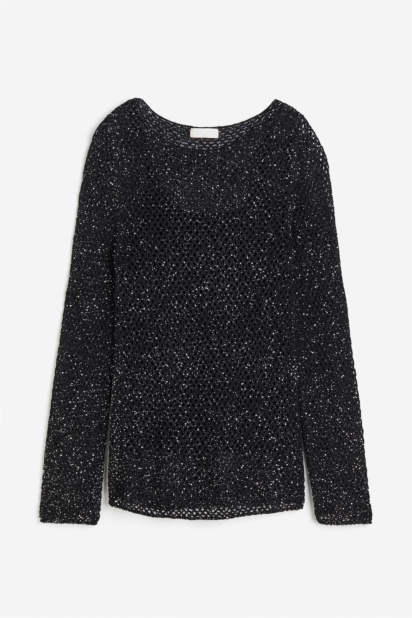 Топ с длинными рукавами из шелковой ткани с дырчатым трикотажем и россыпью мерцающих пайеток. Круглый вырез и слегка спущенные плечи. Вязаный топ на бретельках с регулируемыми лямками.
