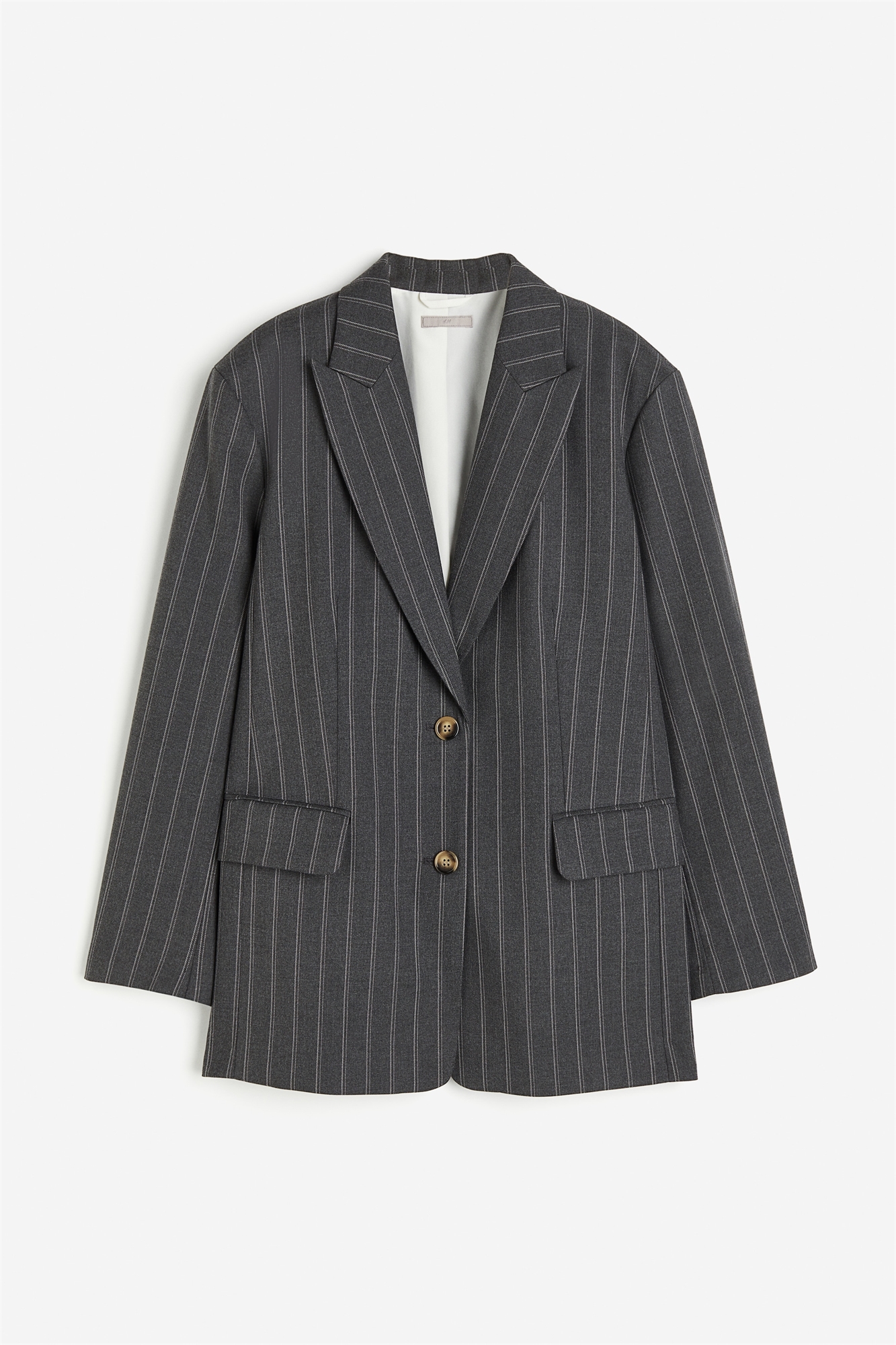 Однобортный блейзер из саржи с поднимающимся лацканом и завышенной посадкой. Плечевые накладки, декоративные пуговицы на рукавах и прорезные карманы. Потайной разрез сзади. На подкладке.