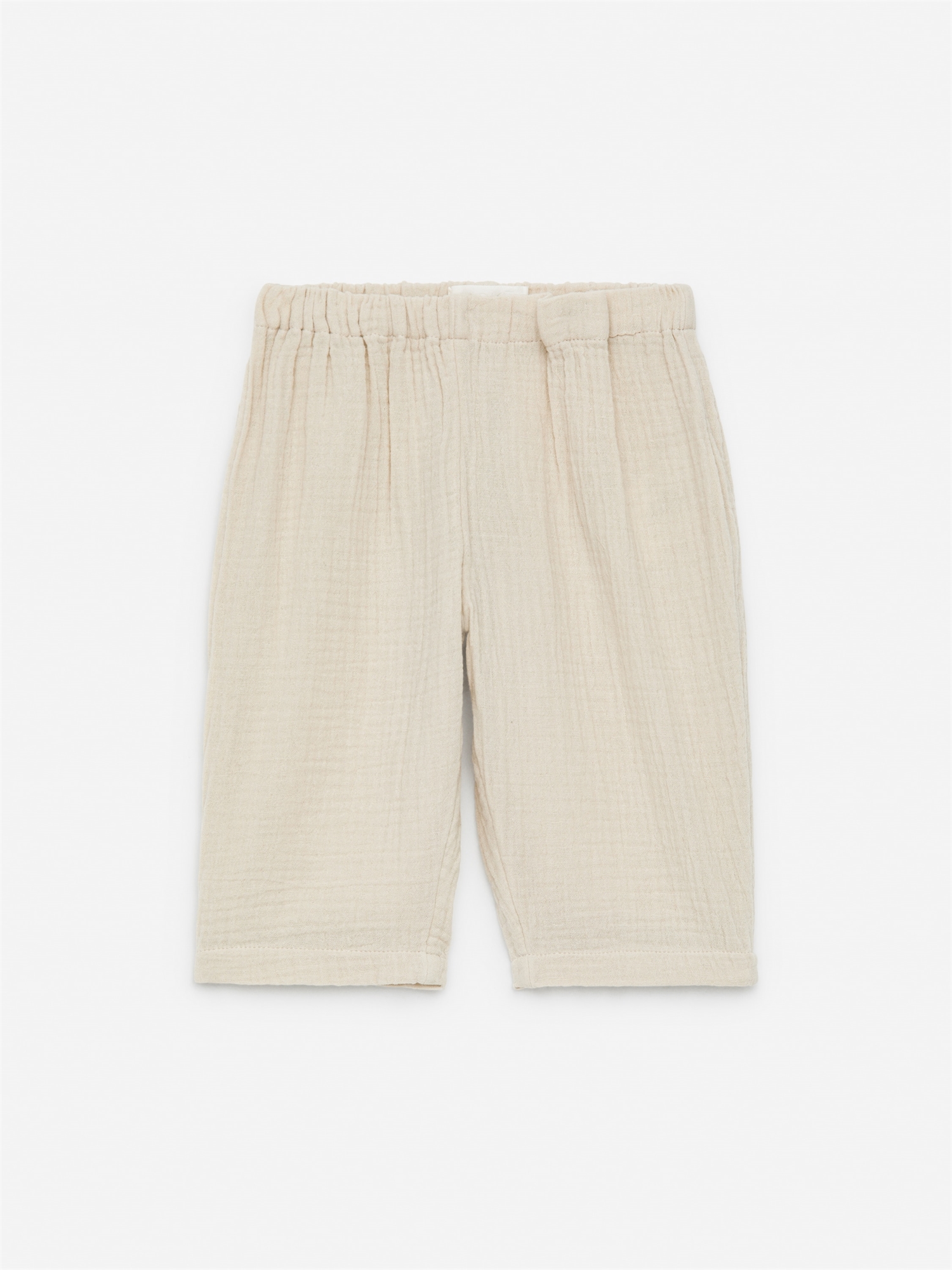 Свободные брюки из хлопка с мягким муслиновым плетением. С регулируемым поясом и одним задним карманом.