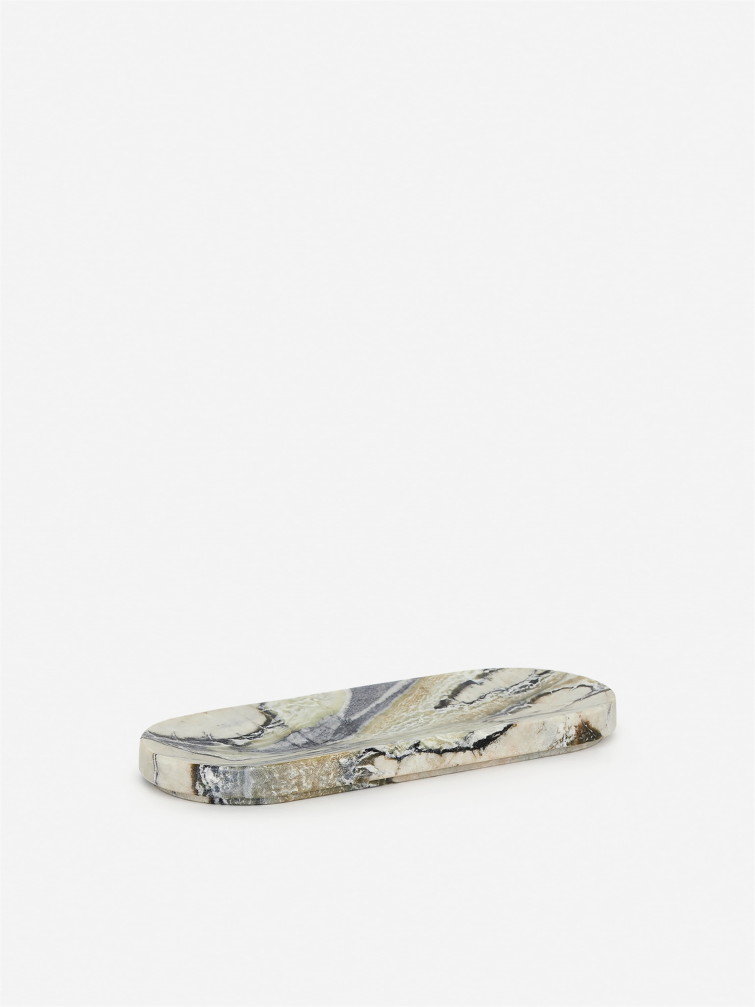 Овальный мраморный поднос. Длина 24,5 см, ширина 9,1 см. Поскольку мрамор является натуральным материалом, цвет и фактура каждого изделия могут отличаться.