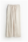 Брюки из воздушного льняного полотна с высокой утягивающейся талией, карманами в боковых швах и прямыми ногами.