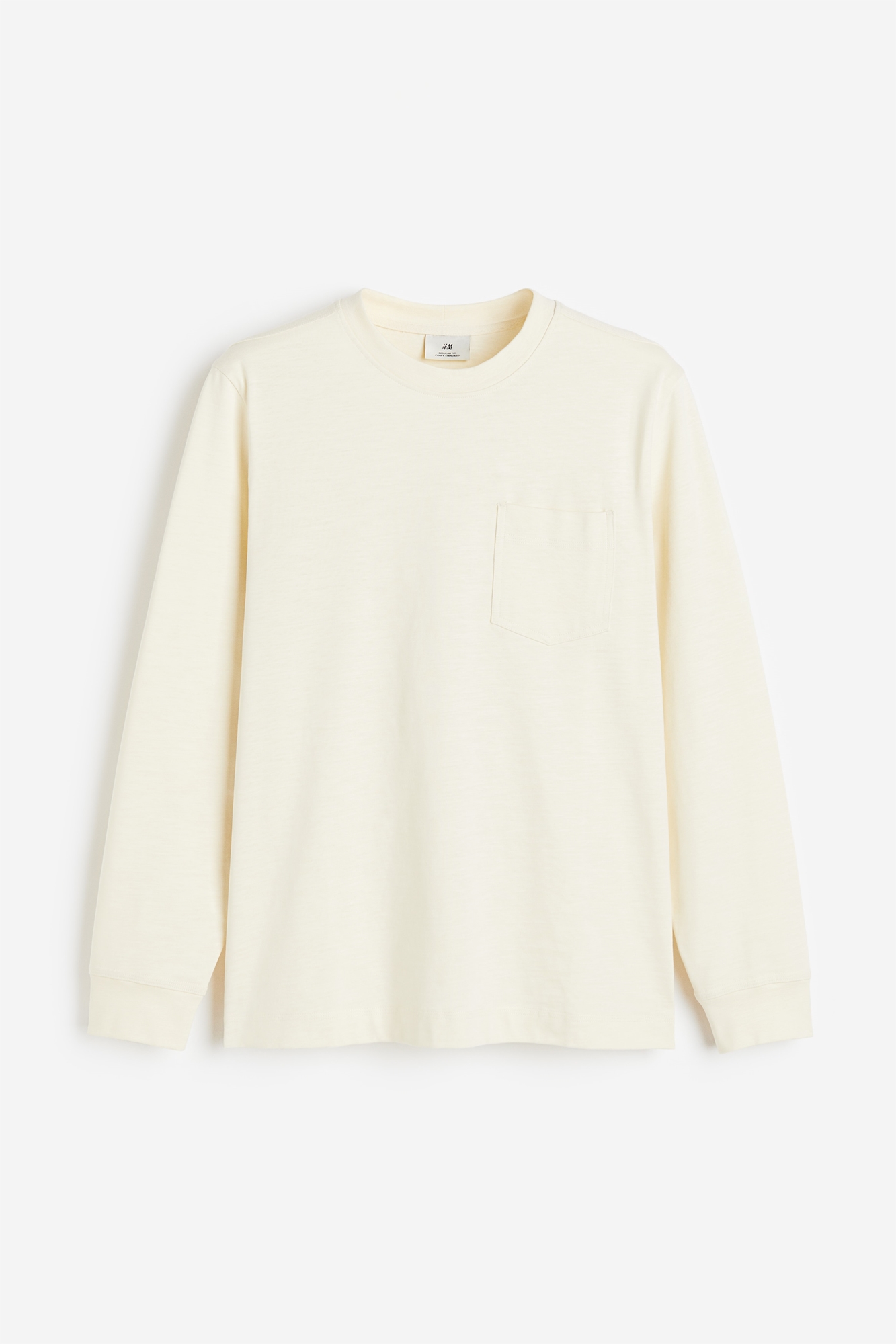 Топ с длинными рукавами из плотного хлопкового джерси с круглым вырезом в рубчик, открытым нагрудным карманом, длинными рукавами с ребристыми манжетами и прямым покроем. Регулярный крой для комфортной носки и классического силуэта.
