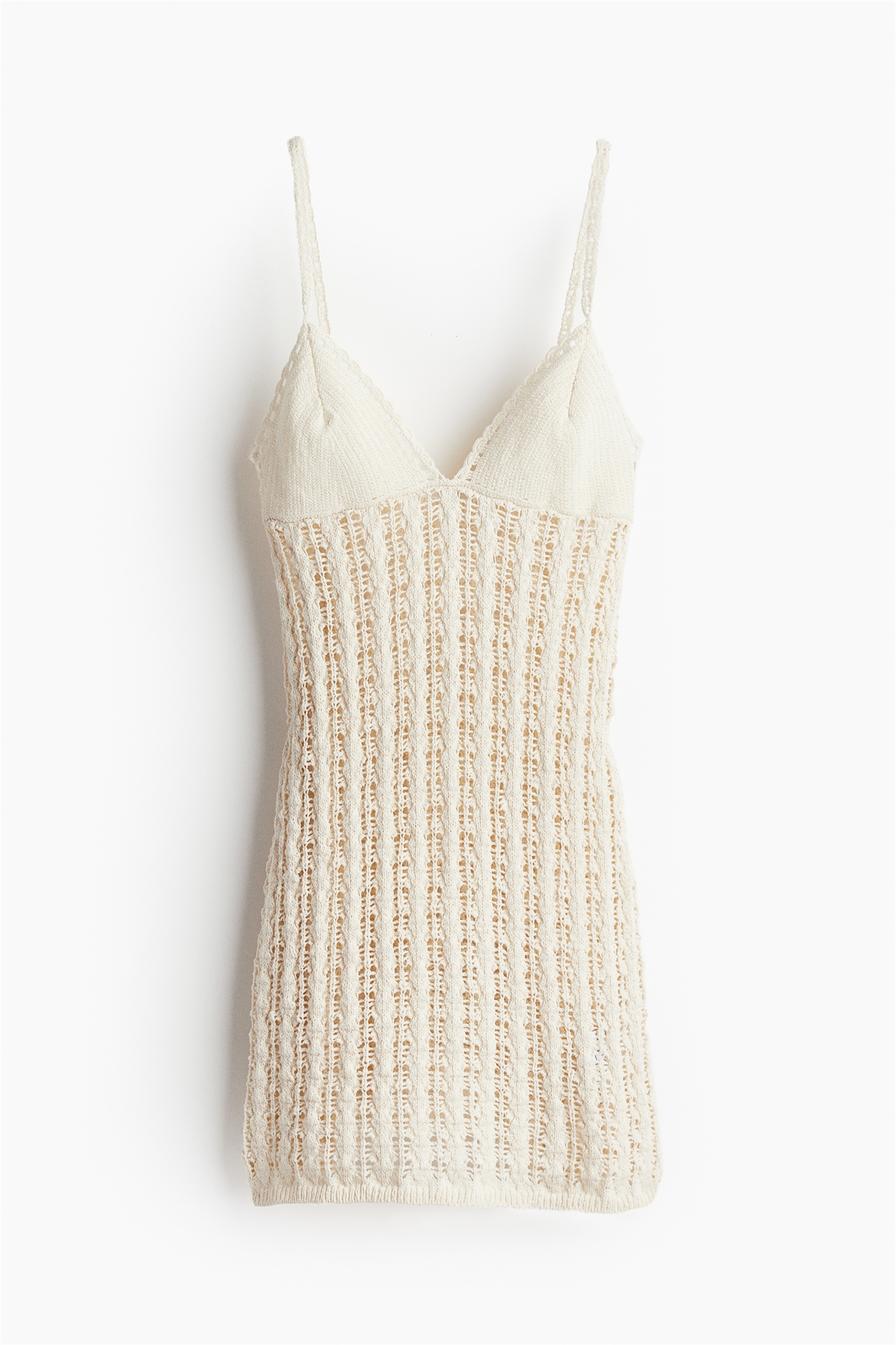 Короткое приталенное платье из мягкого вязаного трикотажа пуантель с ребристой вязкой по линии бюста. Узкие бретели, V-образный вырез с гребешком и прямой подол. Без подкладки.