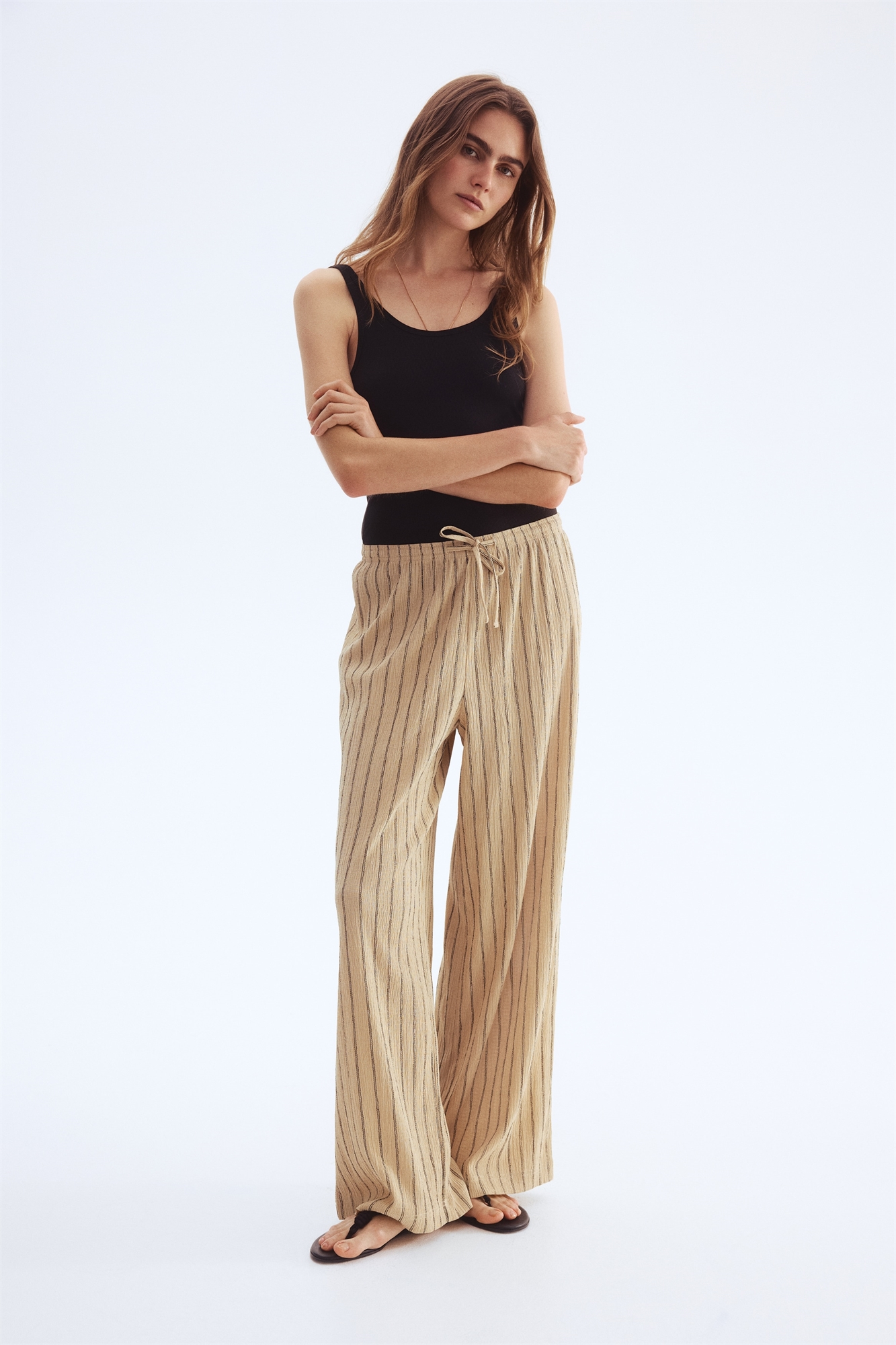 Свободные брюки из джерси с высокой эластичной талией и широкими штанинами.