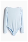 Боди с длинными рукавами из эластичного джерси с изящным вырезом-лодочкой и потайными кнопками в области промежности. Частично на подкладке.
