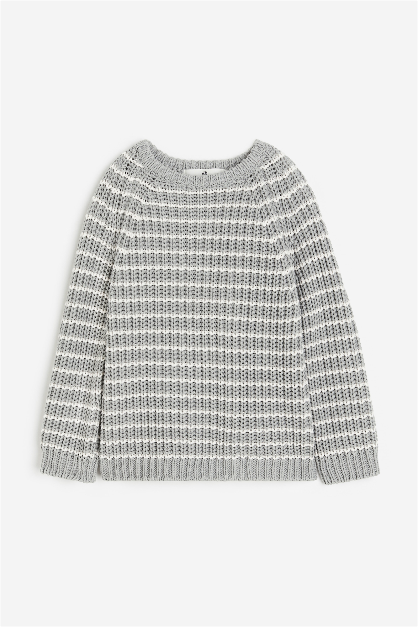 Детский эксклюзив. Джемпер оверсайз из мягкого хлопкового трикотажа с круглым вырезом в рубчик, длинными рукавами реглан и рубчиками на манжетах и подоле.