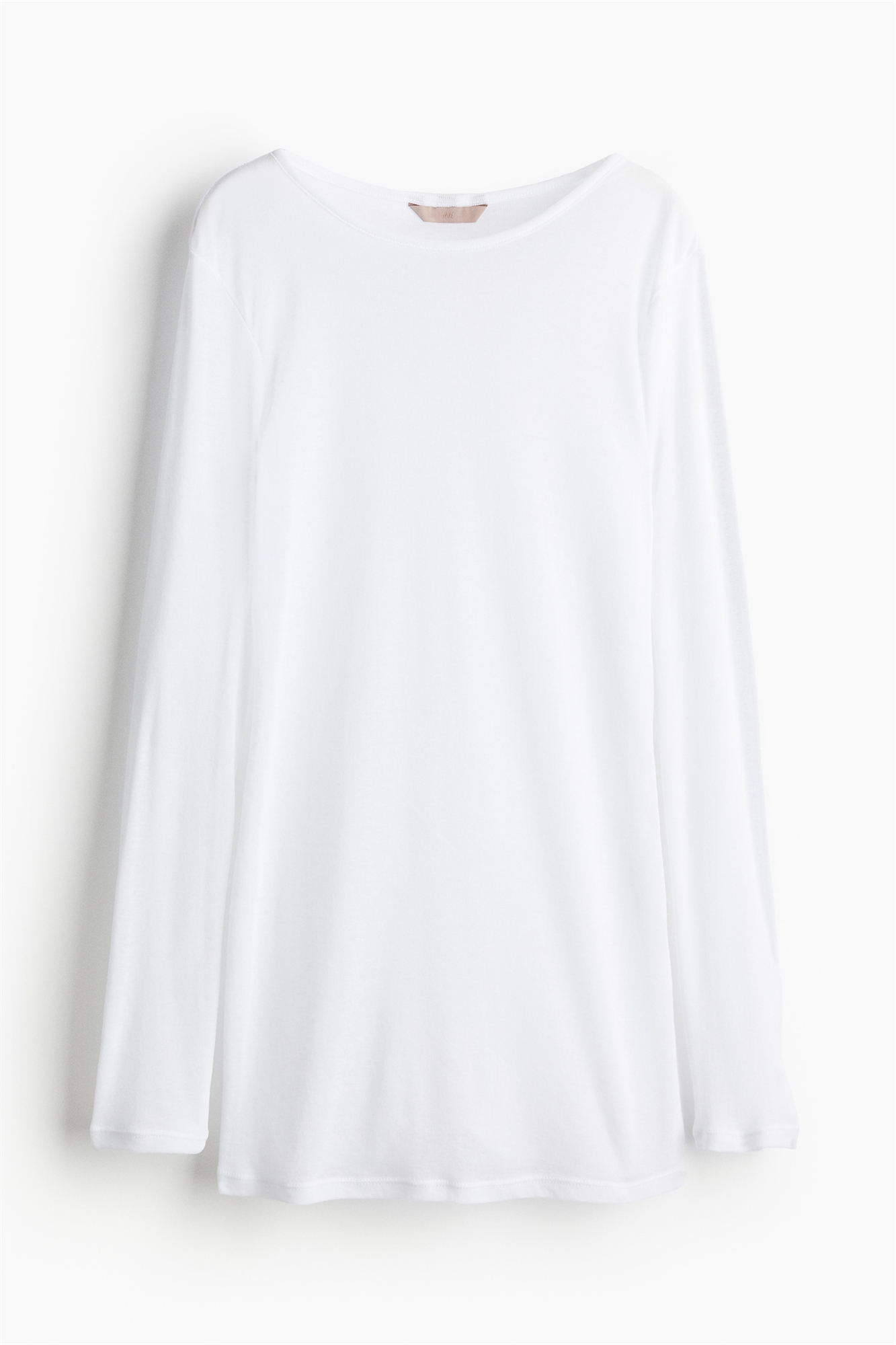 Короткое платье из мягкого джерси с круглым вырезом и длинными рукавами.