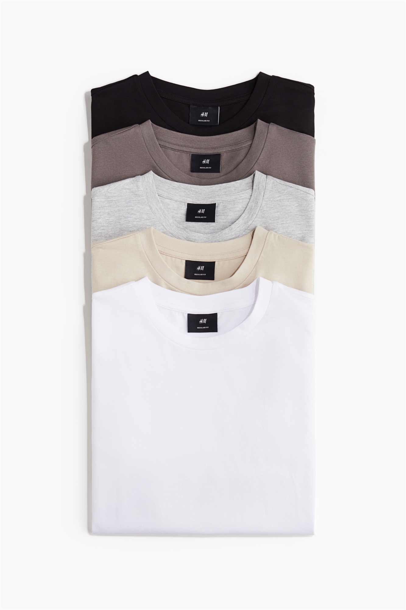 Футболки из легкого хлопкового джерси с круглым вырезом в рубчик и прямым кроем подола. Регулярный крой для комфортного ношения и классического силуэта.