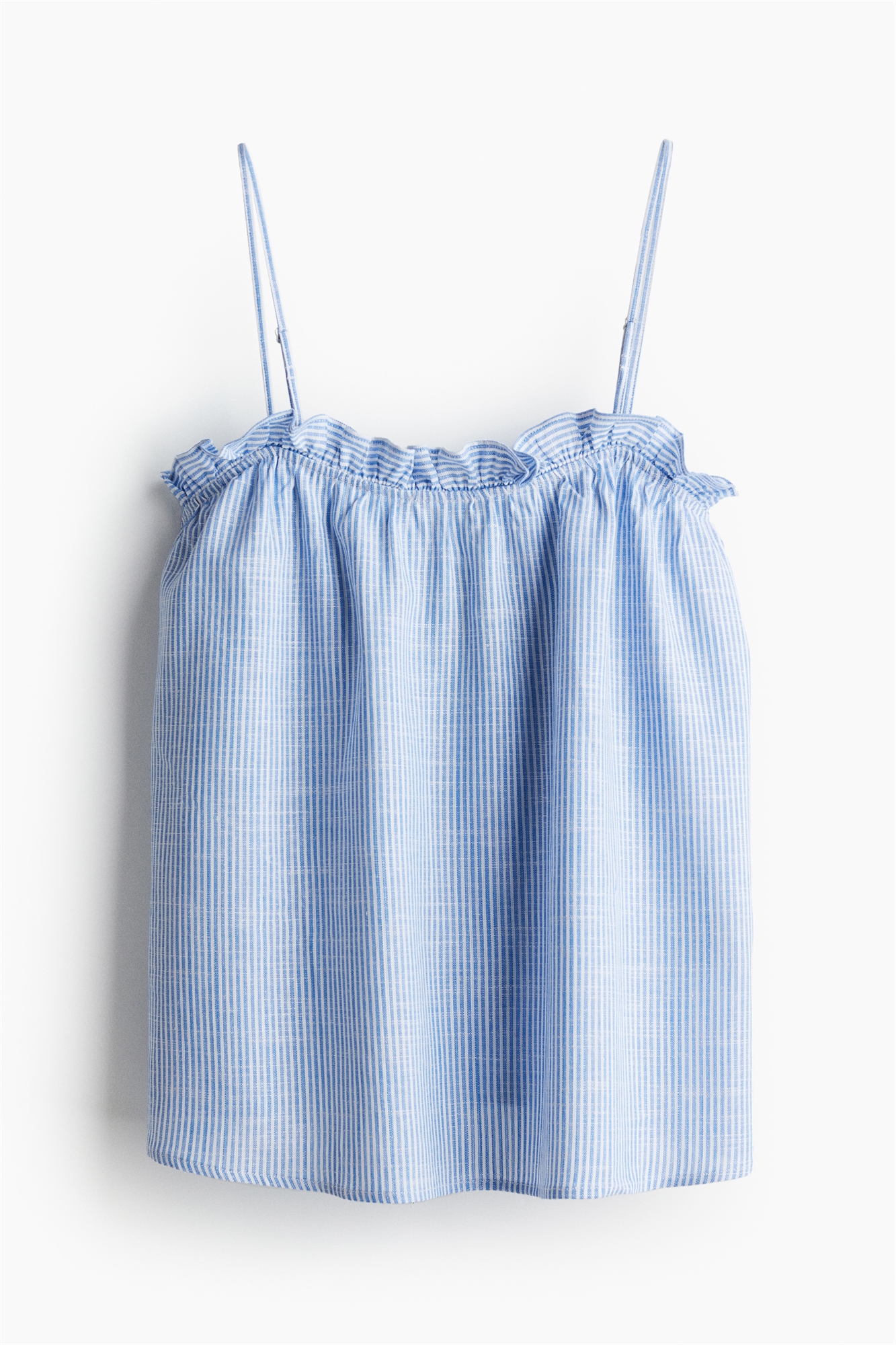 Свободный топ из воздушной ткани с узкими регулируемыми бретелями и оборкой по верху.