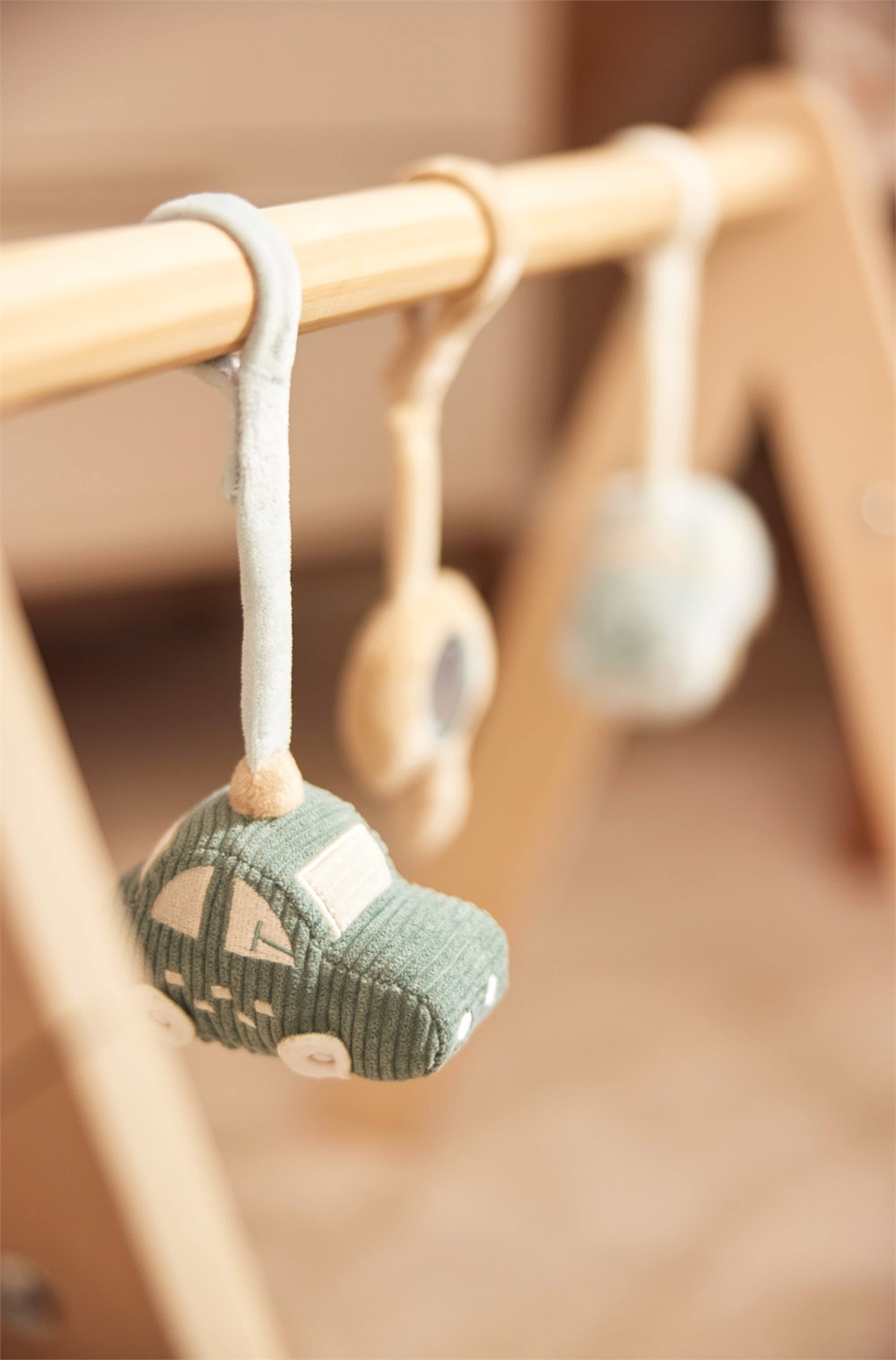 Деревянный детский тренажер с игрушками будет развлекать вашего малыша и стимулировать его моторику. Мягкие игрушки можно легко прикрепить к детскому тренажеру с помощью шпильки. Тренажер можно использовать в манеже или в сочетании с ковриком для манежа на полу. Вы получите цветок, утенка, пчелу и божью коровку.