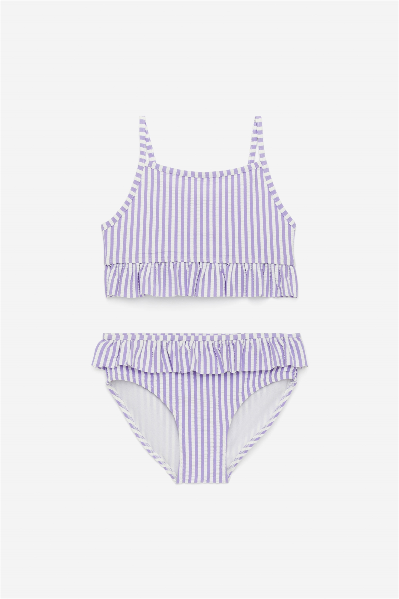 Комплект бикини из джерси Seersucker с обрезанным топом и трусами с оборками. Полностью на подкладке. Обычный крой.